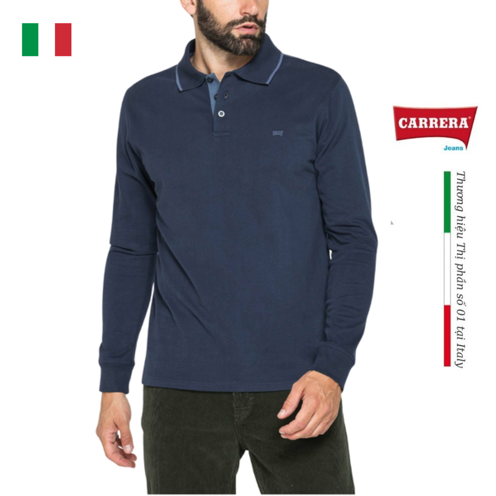 Áo polo tay dài chất liệu cotton jersey dày dặn, ấm áp, thích hợp cho mùa lạnh. Dáng ôm vừa vặn với cổ áo ba khuy và cổ bẻ. Logo thêu trước ngực đồng màu và các chi tiết màu tương phản.