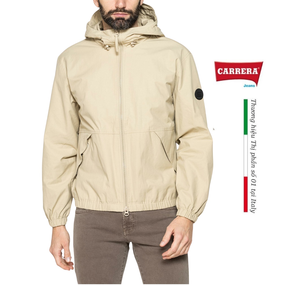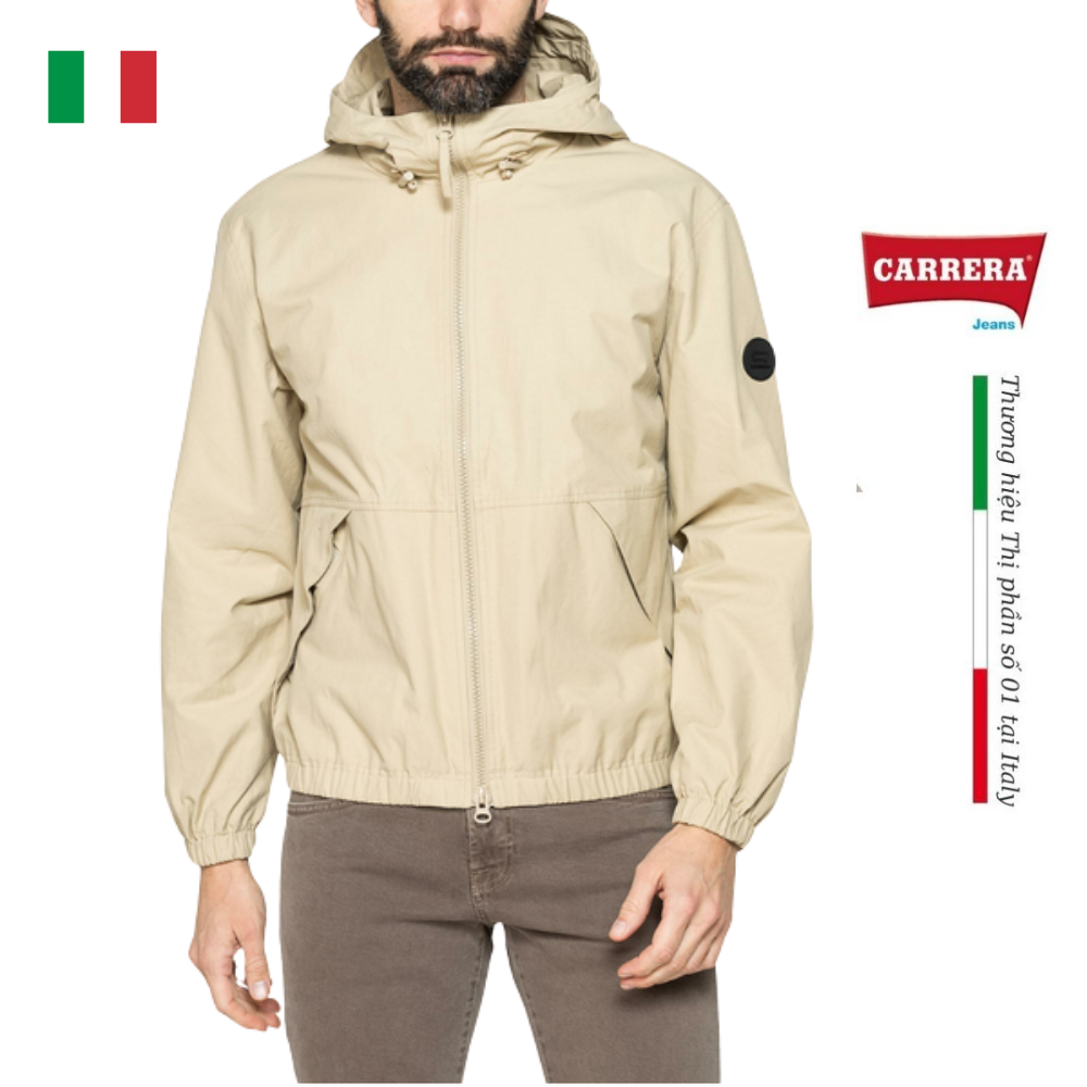 Áo khoác có mũ trùm đầu và khóa kéo giữa. Kiểu dáng vừa vặn, có túi trong và bo chun ở gấu áo và tay áo. Vải có vẻ ngoài giống cotton, lý tưởng cho giữa mùa.