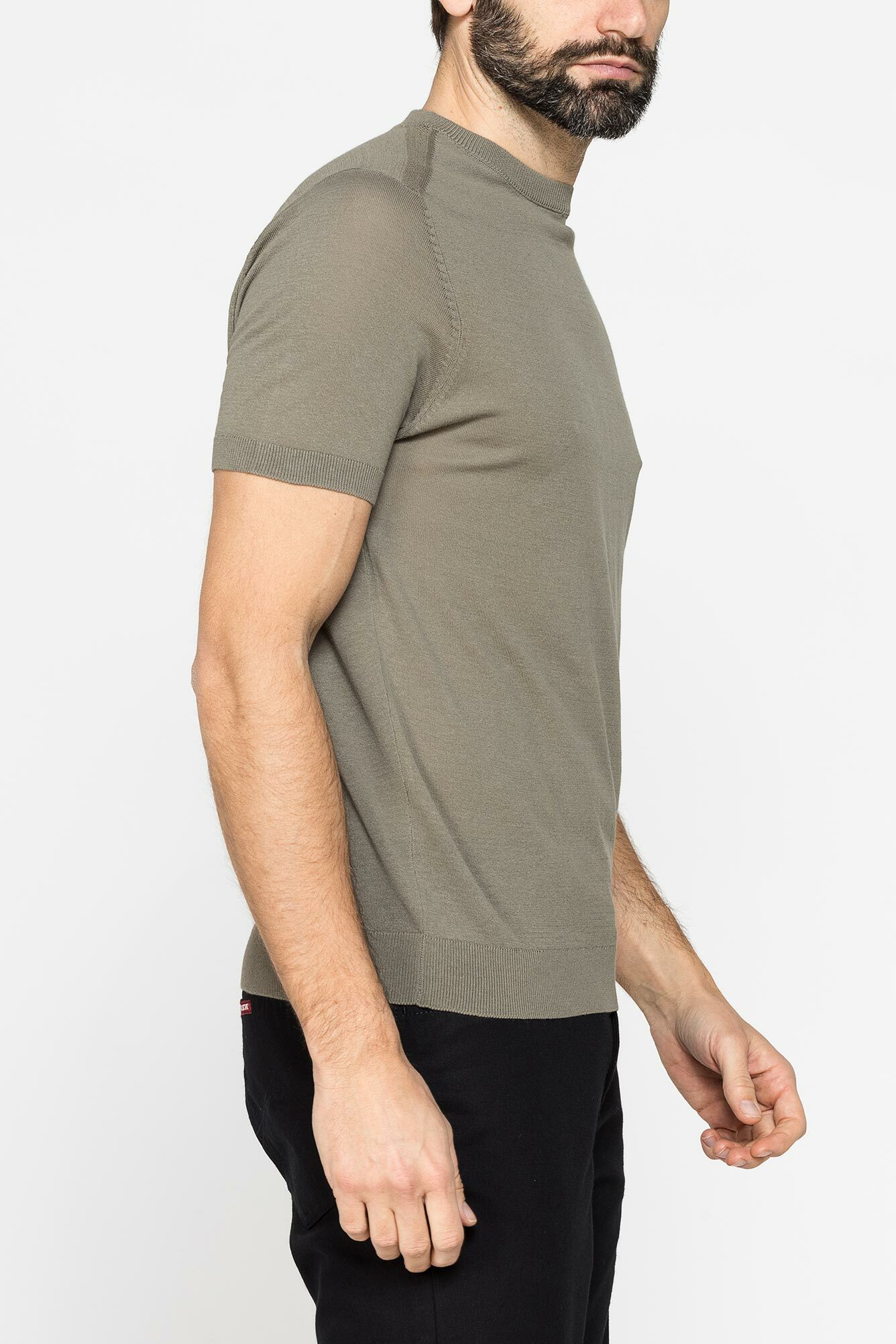 Áo len cổ tròn, tay ngắn, dáng ôm vừa vặn, được làm từ vải crepe cotton nguyên chất. Chất liệu vải mới này, mát mẻ và khô ráo, rất lý tưởng cho mùa hè. Đường xoắn đặc biệt của sợi vải tạo nên vẻ ngoài khác biệt, trong khi tay nghề thủ công tinh xảo càng làm tăng thêm vẻ độc đáo, riêng biệt cho sản phẩm. Chất liệu cao cấp, kết hợp giữa phong cách và sự thoải mái, phù hợp cho những ngày nóng bức nhất.