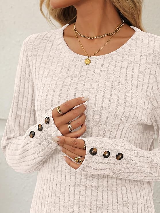 - Chất liệu: Được chế tác từ hỗn hợp 60% polyester, 35% rayon và 5% spandex, chiếc áo len này mang lại cảm giác mềm mại, thoải mái cả ngày và độ co giãn cho bạn tự do vận động.