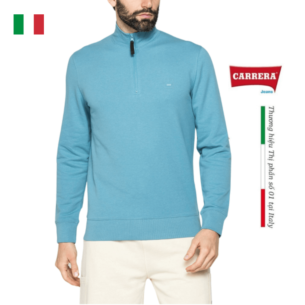 Áo nỉ cổ cao có khóa kéo nửa và in hình logo Carrera ở ngực bên trái. Kiểu dáng vừa vặn với cổ tay áo và gấu áo có thun bo. Trang phục làm bằng vải nỉ nhẹ không chải, lý tưởng cho thời điểm giao mùa.