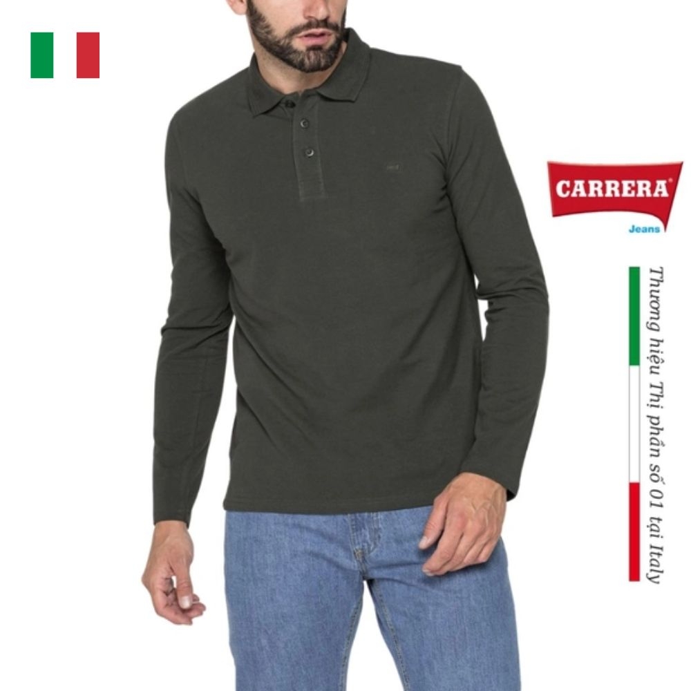 Áo polo trơn dài tay bằng vải piquet có 3 khuy cổ và thêu logo Carrera cùng tông màu. Một chiếc áo dễ phối đồ không thể thiếu của bạn