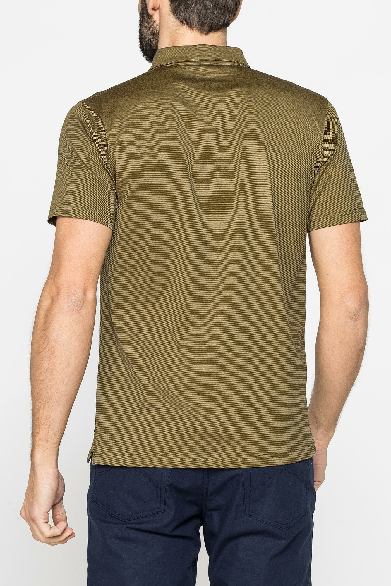 Áo polo nam tay ngắn họa tiết kẻ nhuộm màu đa dạng. Mẫu được làm bằng vải jersey bông làm bóng, giúp trang phục trông sáng bóng hơn. Trang phục có thêu biểu tượng Carrera trên ngực trái và khuy ở giữa với 3 nút. Một trang phục linh hoạt để tạo ra vẻ ngoài giản dị.
