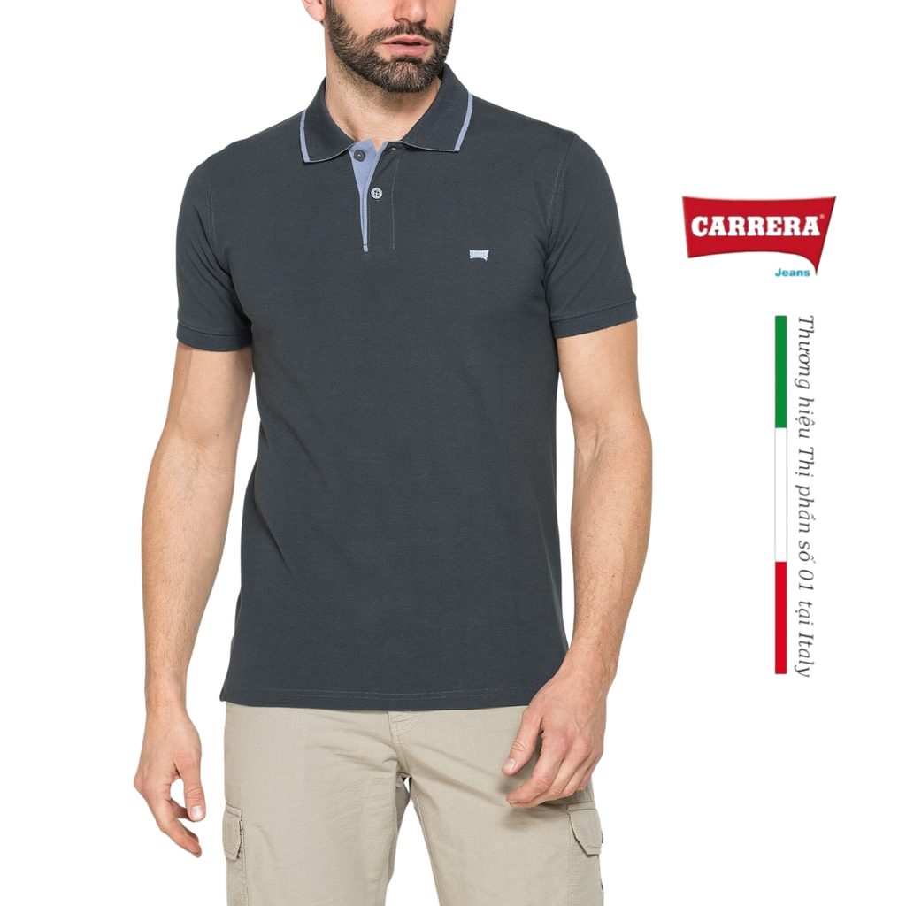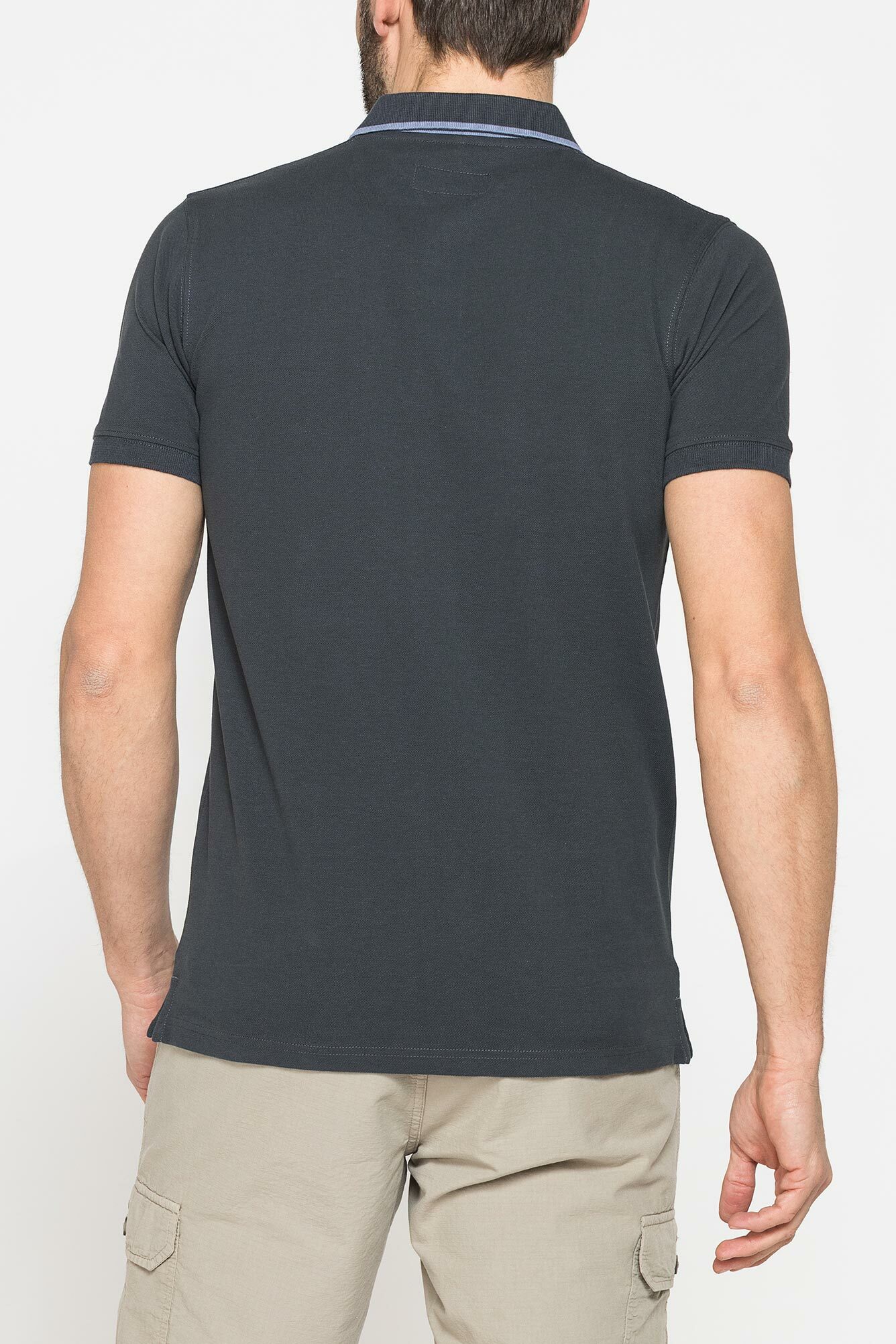 Áo polo ngắn tay nam có phom vừa vặn, được làm bằng vải piqué cotton nguyên chất. Logo thêu trên ngực ở phía bên trái. Cổ áo có viền gân và cổ tay áo có sọc họa tiết. Cổ áo 2 khuy. Các lỗ thoáng khí bên ở viền dưới cùng với nẹp viền. Một trang phục cần thiết với phong cách giản dị, cổ điển