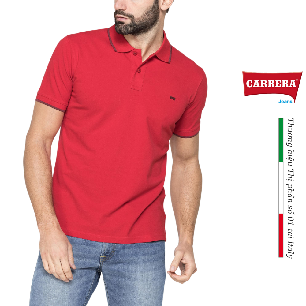 Áo polo ngắn tay nam có phom vừa vặn, được làm bằng vải piqué cotton nguyên chất. Logo thêu trên ngực ở phía bên trái. Cổ áo có viền gân và cổ tay áo có sọc họa tiết. Cổ áo 2 khuy. Các lỗ thoáng khí bên ở viền dưới cùng với nẹp viền. Một trang phục cần thiết với phong cách giản dị, cổ điển