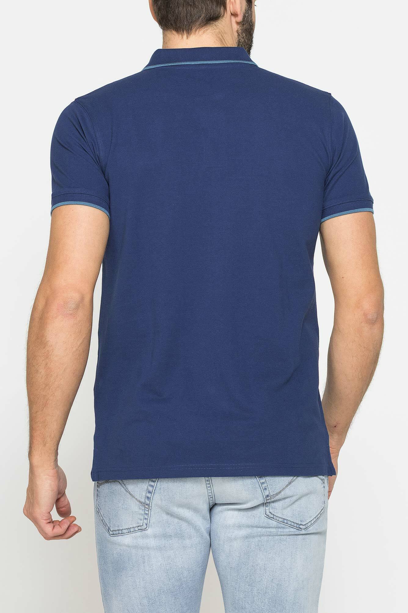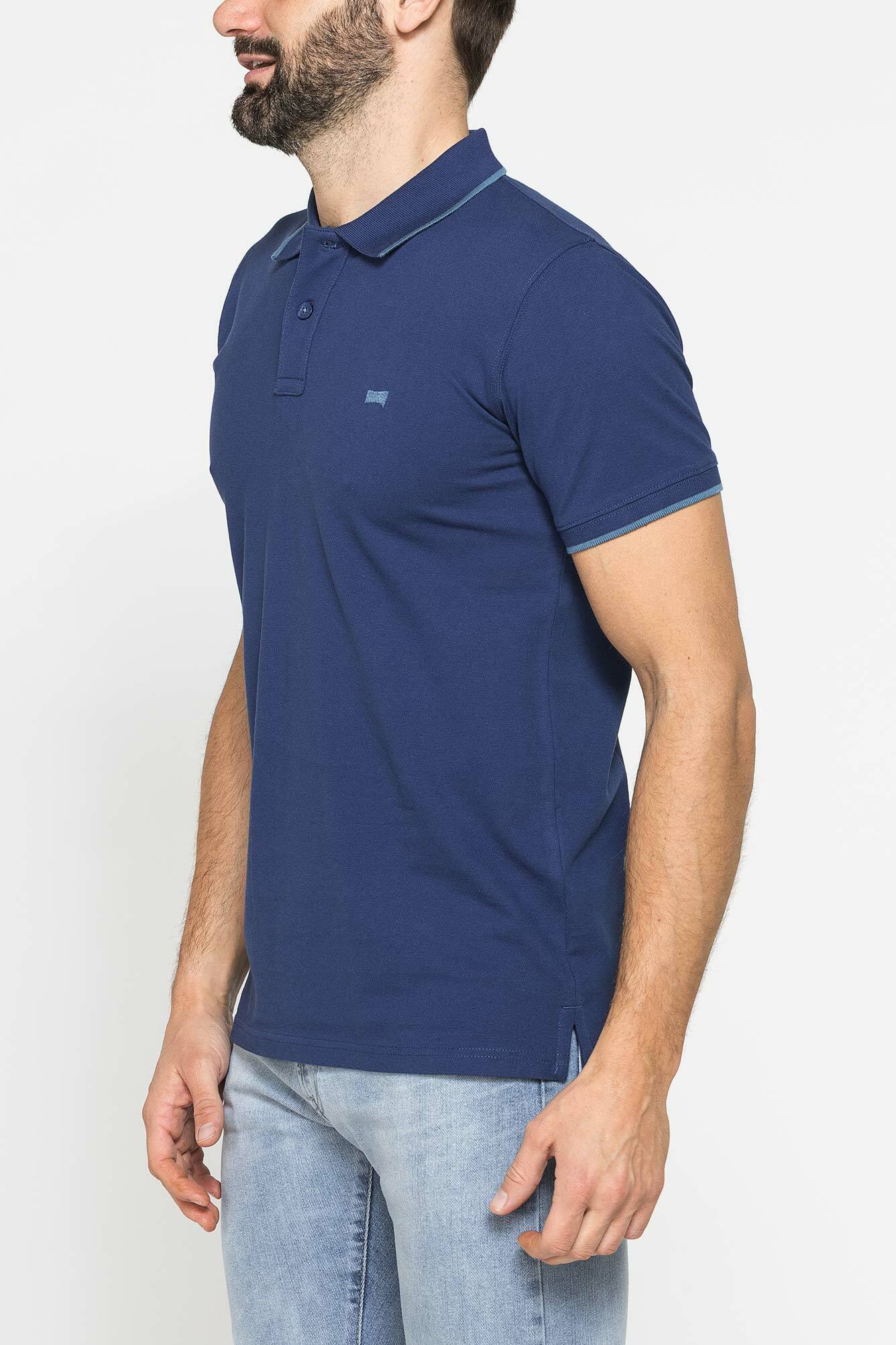 Áo polo ngắn tay nam có phom vừa vặn, được làm bằng vải piqué cotton nguyên chất. Logo thêu trên ngực ở phía bên trái. Cổ áo có viền gân và cổ tay áo có sọc họa tiết. Cổ áo 2 khuy. Các lỗ thoáng khí bên ở viền dưới cùng với nẹp viền. Một trang phục cần thiết với phong cách giản dị, cổ điển