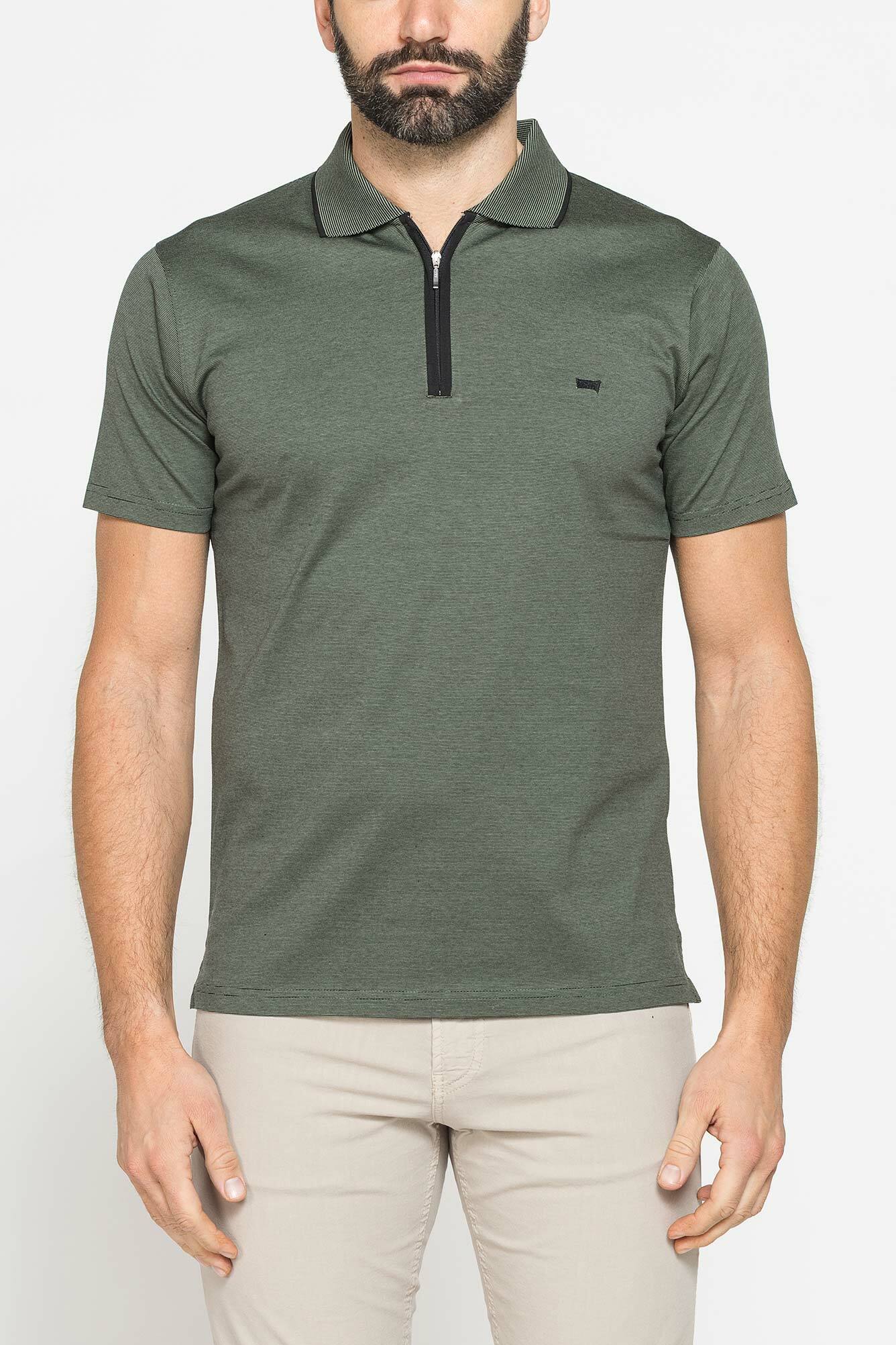 Áo polo nam tay ngắn được làm từ vải jersey cotton, cổ kéo khóa với họa tiết sọc nhuộm sợi. Chất liệu vải với bề mặt mịn màng và tinh tế làm nổi bật chiếc áo, được hoàn thiện với khóa kéo và logo thêu ở ngực trái. Một chiếc áo đa năng, được thiết kế để thêm nét thể thao vào vẻ ngoài tinh tế và hiện đại.