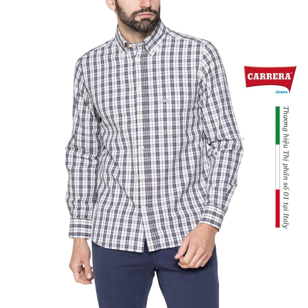 Áo sơ mi tay dài kiểu cổ điển. Mẫu có cổ áo cài khuy, khuy kép ở cổ tay áo và túi có thêu logo Carrera. Được làm theo các mẫu khác nhau bằng bông nhuộm sợi. Chiếc áo thoải mái của bạn cho mỗi ngày.