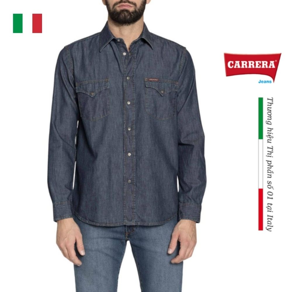 Áo sơ mi denim dài tay với chất liệu vải cotton nguyên chất. Mẫu áo phương Tây cổ điển với phom vừa vặn thông thường với các nút cài. Túi đôi phía trước có nắp và nút đóng. Một trang phục mang tính biểu tượng và trường tồn với thời gian.