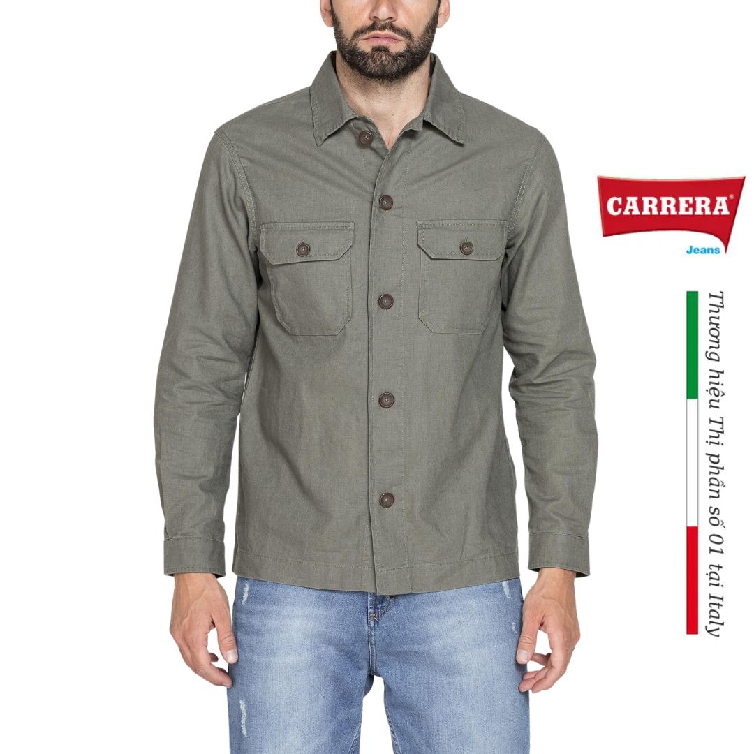 Áo khoác sơ mi vừa vặn mềm mại bằng vải lanh cotton, có túi phía trước, mặc ngoài áo thun để có phong cách thể thao thời thượng.