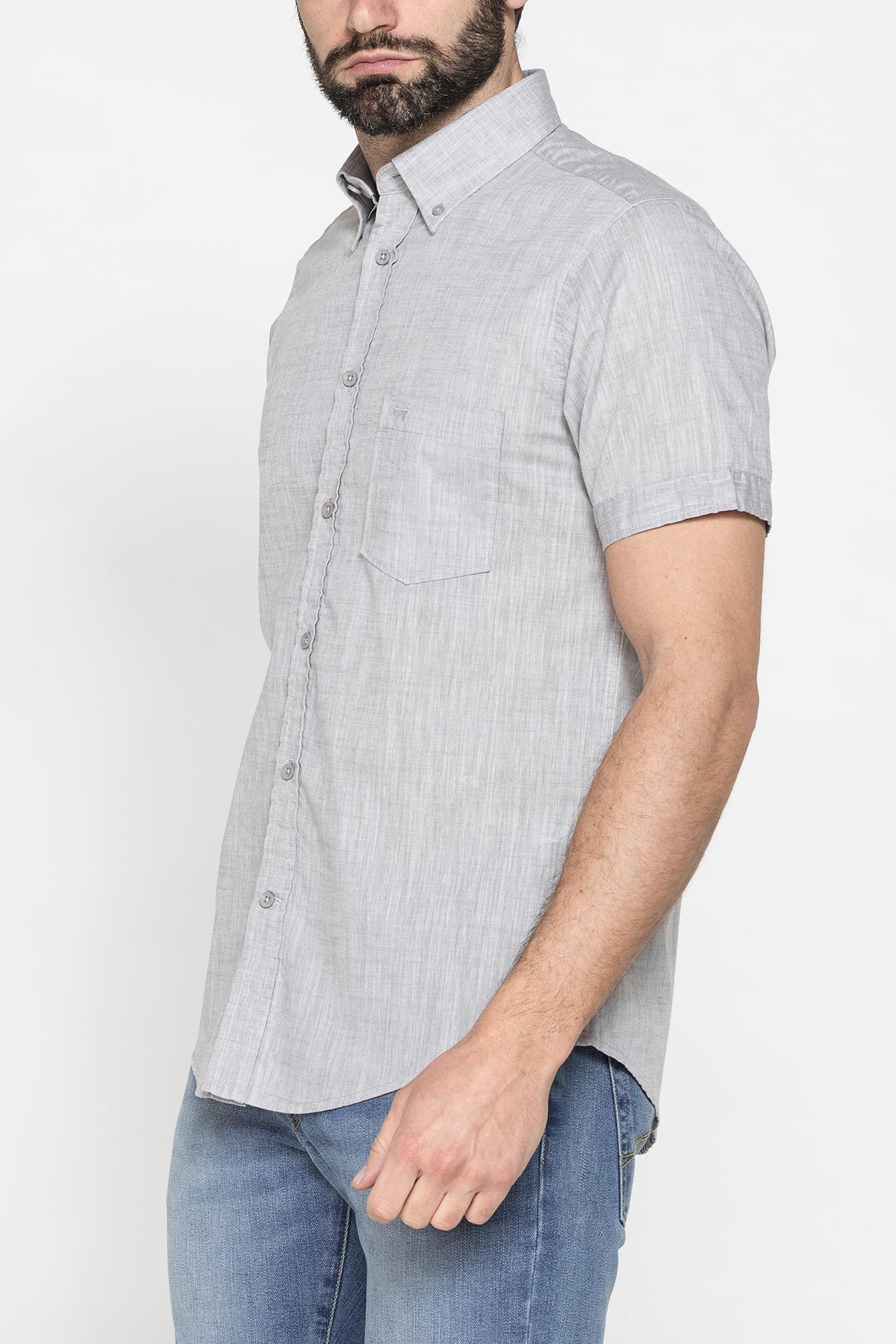 Áo sơ mi nam ngắn tay cổ bẻ. Mẫu có túi bên ngực thêu logo ton sur ton. Vải cotton slub màu trơn với hiệu ứng vải lanh. Trang phục phù hợp với mọi lứa tuổi.