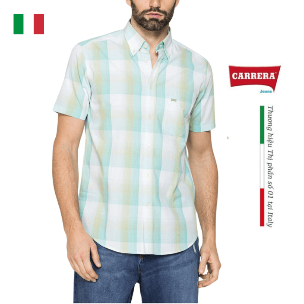 Áo sơ mi tay lỡ với kiểu dáng vừa vặn và cổ điển. Mẫu có cổ áo cài khuy và nẹp viền. Túi bên ngực thêu logo Carrera. Được làm từ chất liệu cotton nhuộm sợi chất lượng với nhiều hoạ tiết caro khác nhau, trang phục phù hợp với mọi lứa tuổi.