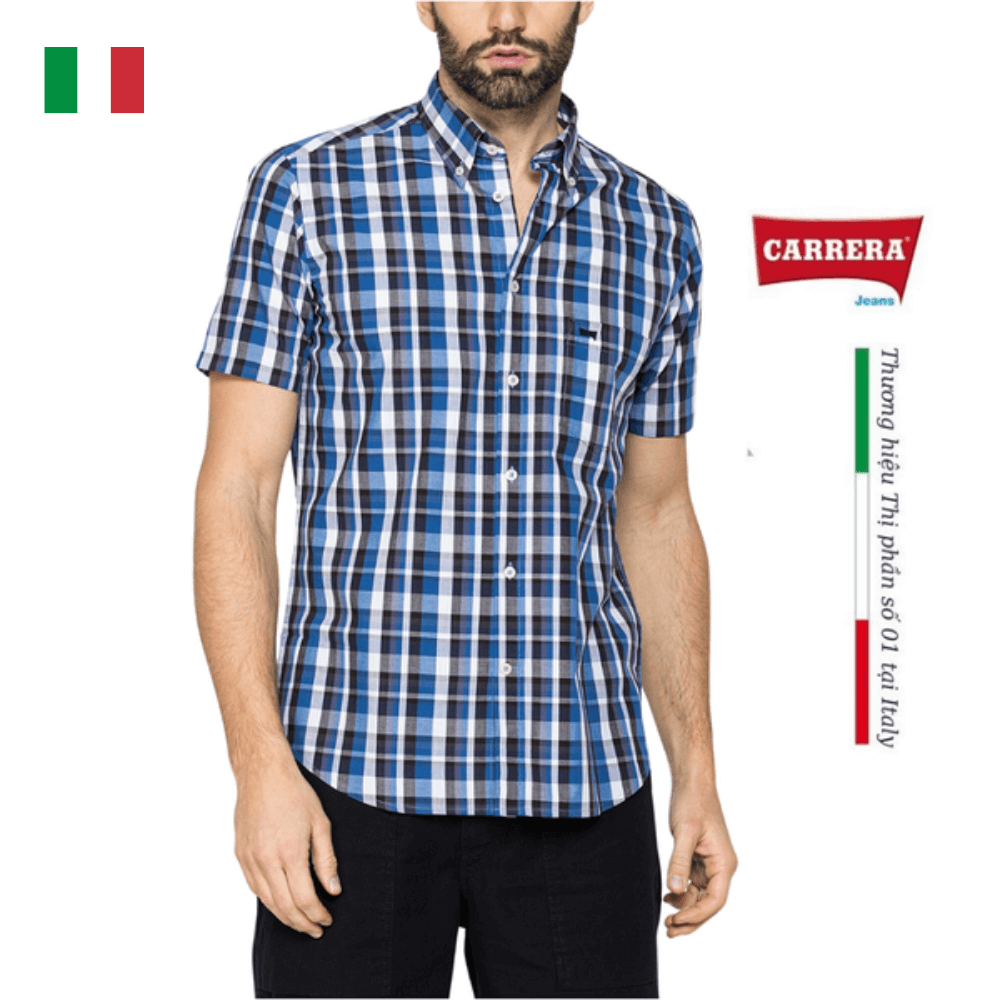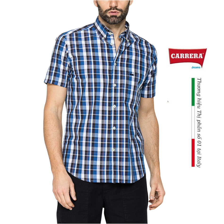 Áo sơ mi tay lỡ với kiểu dáng vừa vặn và cổ điển. Mẫu có cổ áo cài khuy và nẹp viền. Túi bên ngực thêu logo Carrera. Được làm từ chất liệu cotton nhuộm sợi chất lượng với nhiều hoạ tiết caro khác nhau, trang phục phù hợp với mọi lứa tuổi.