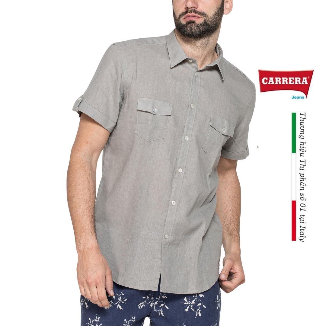 Áo sơ mi nam ngắn tay cổ Kent, túi đôi ngực có vạt, khuy cài. Mẫu đồng màu với vải nhuộm quần áo, làm từ vải lanh pha với bông, trong đó bông giảm nhăn, giữ nguyên vẻ ngoài của vải lanh. Chiếc áo này thích hợp cho những ngày hè nóng bức nhất.