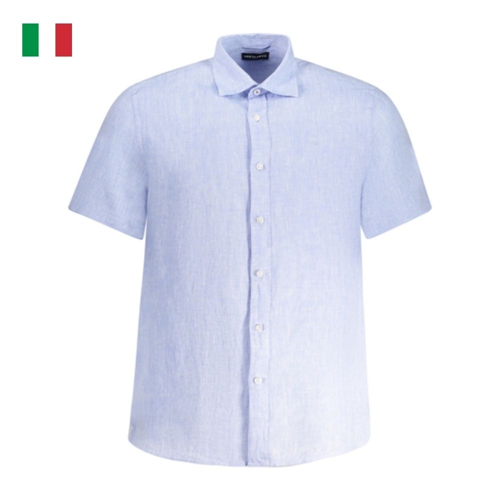 - ÁO SƠ MI TAY NGẮN, CỔ ÁO Ý, KHUY, THÊU, LOGO