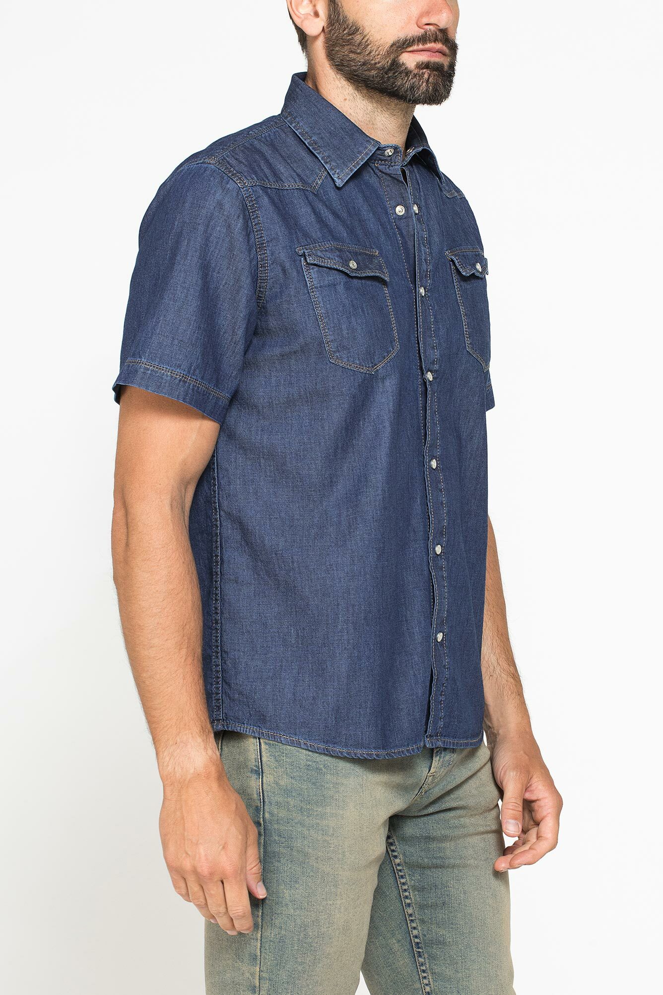 Áo sơ mi cộc tay denim được làm từ cotton nguyên chất. Áo có đường khâu tương phản, hai túi nắp và khuy bấm bằng xà cừ. Có logo Carrera trên túi ngực trái