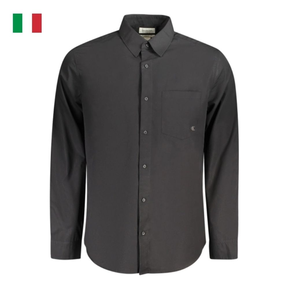 - ÁO SƠ MI DÀI TAY, CLASSIC FIT, CỔ KIỂU Ý, 1 TÚI, THÊU, LOGO, 100% COTTON HỮU CƠ