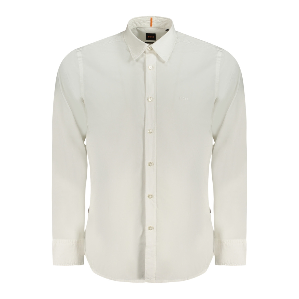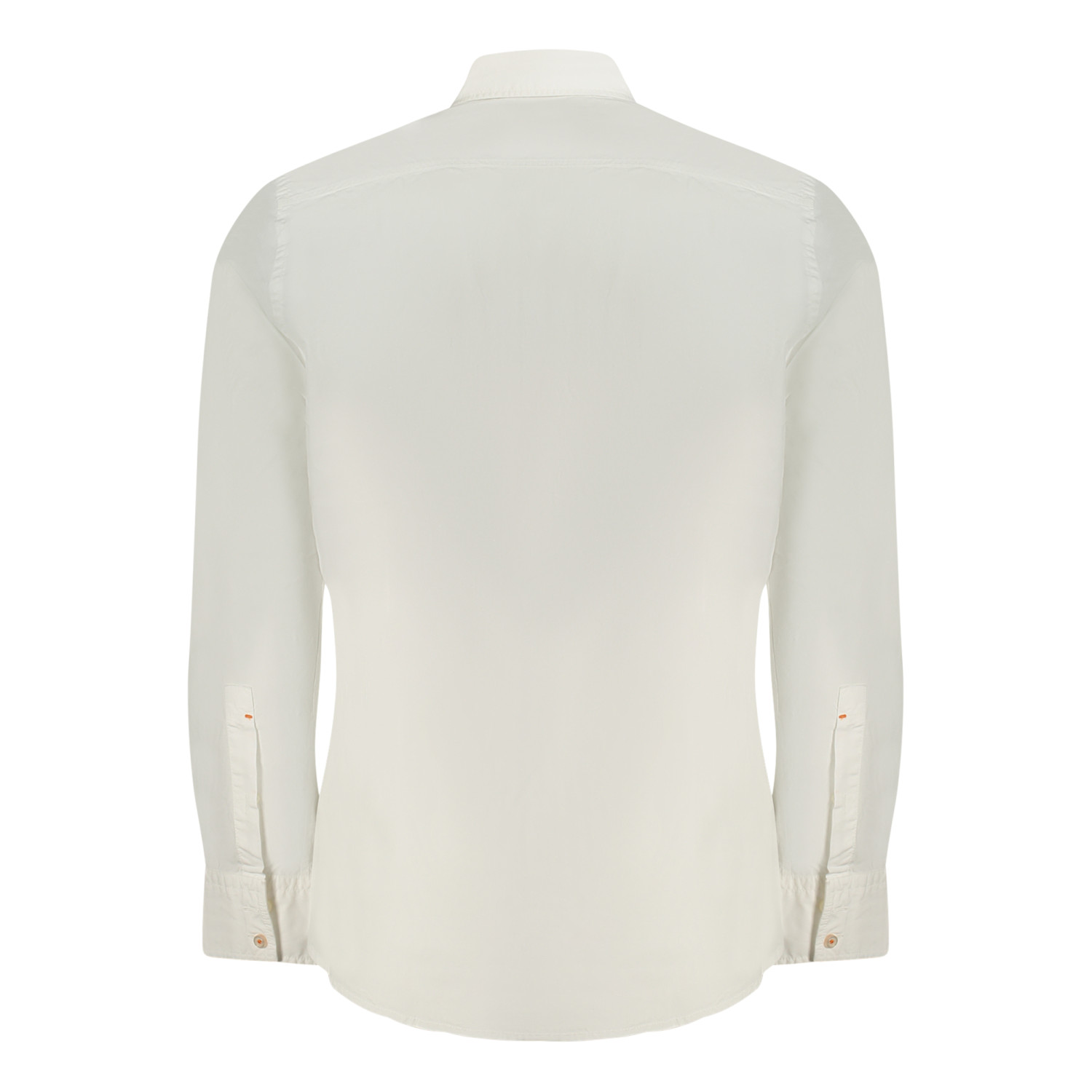 - ÁO SƠ MI DÀI TAY, REGULAR FIT, 1 TÚI, CỔ ÁO KIỂU Ý, CỔ TAY ÁO 1 KHUY, THỂU, LOGO