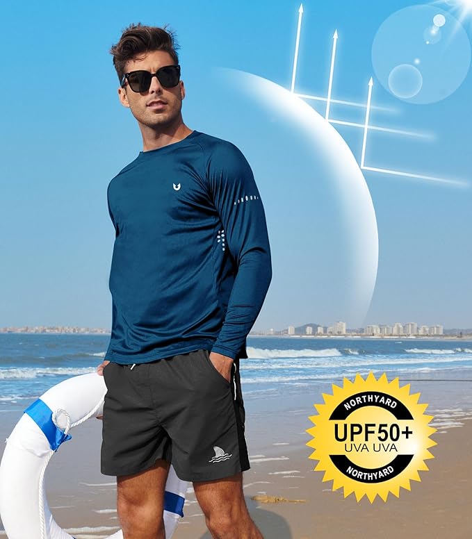 Áo chống nắng NORTHYARD UPF 50+ cho nam, tay dài, bơi, chống phát ban, tập luyện, chạy bộ, thể thao, phòng tập thể dục, câu cá, đi bộ đường dài