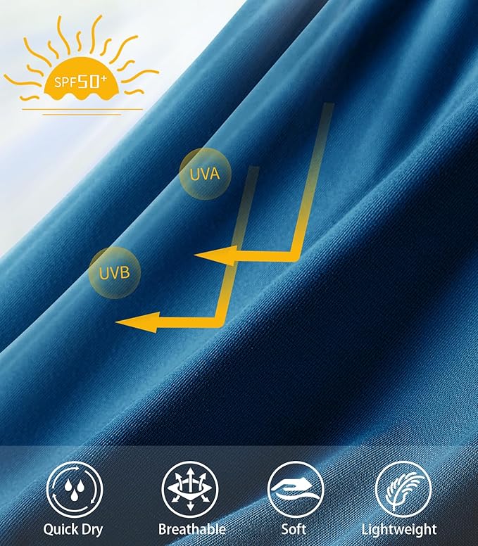 This UPF 50+ Shirts will blocks 98% of UVA/UVB rays;The characteristics of fast drying fabric help you quickly sweat away when you are workout
