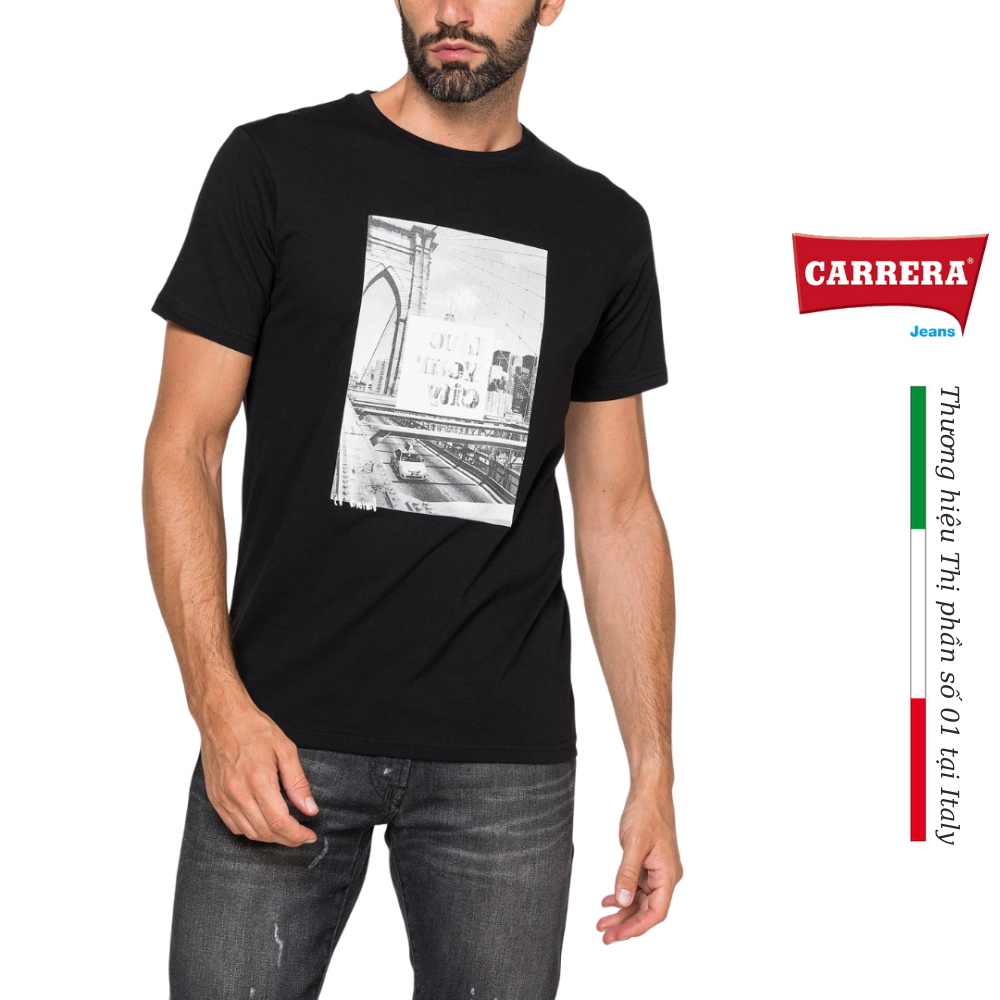 Áo thun nam cổ tròn, tay ngắn, form dáng vừa vặn. Được làm bằng phần lớn bông cotton siêu thấm hút. In họa tiết mặt trước với các bản in đồ họa hoặc ảnh chụp, phù hợp với xu hướng hiện đại.