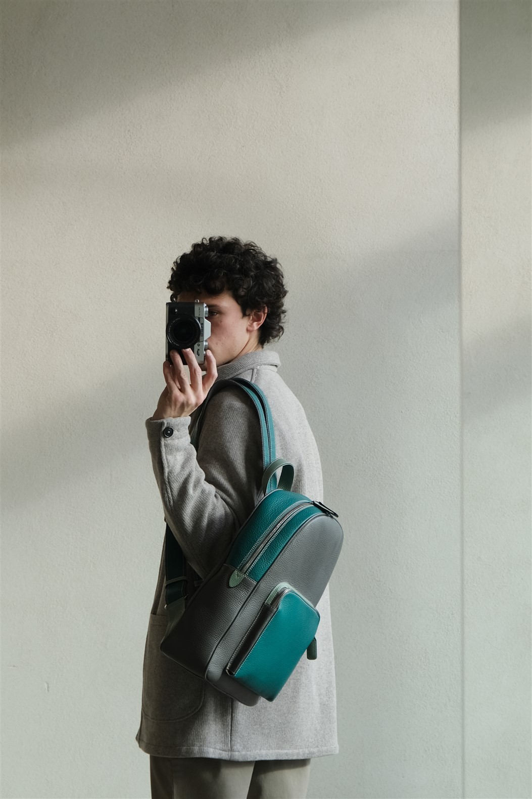 Ba lô cỡ trung bằng da hạt ba màu