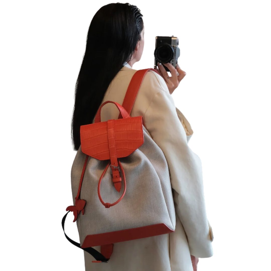 Ba lô cỡ vừa bằng vải và da Cá sấu