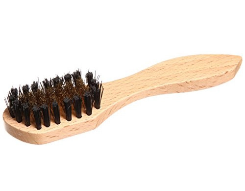 Bàn chải tay cầm dài, có sợi đồng và nylon kết hợp dùng cho da lộn và da nubuck.Tay cầm bằng gỗ beech đánh bóng.