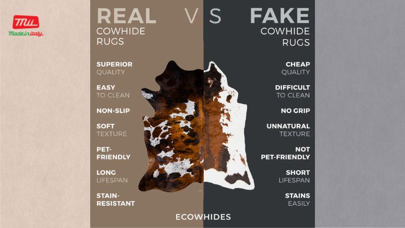 Da bò thật thường có họa tiết, lỗ chân lông bất quy tắc và đôi khi có vết sẹo tự nhiên.