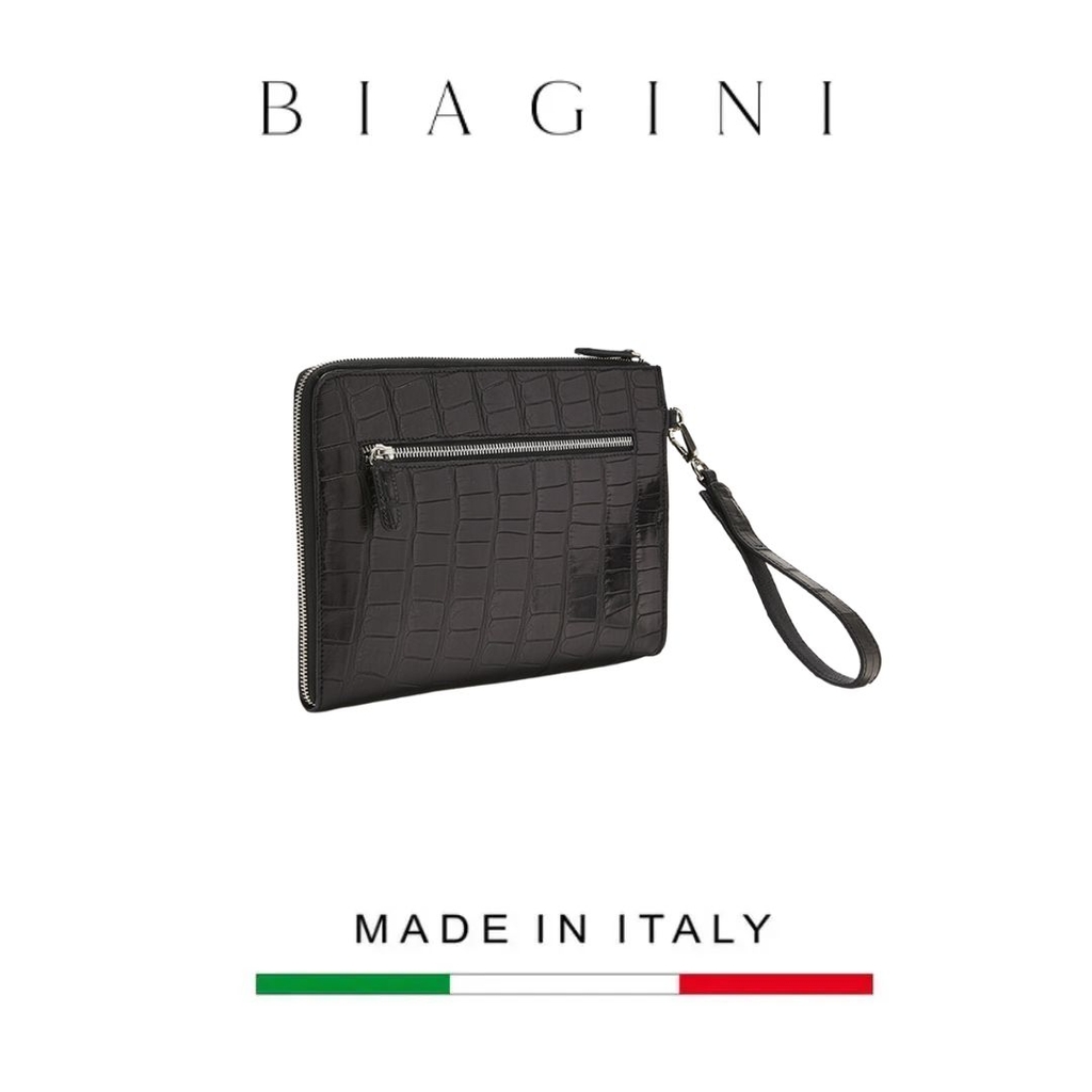 Clutch cỡ trung cá sấu vẽ tay có logo Biagini và tay cầm có thể tháo rời