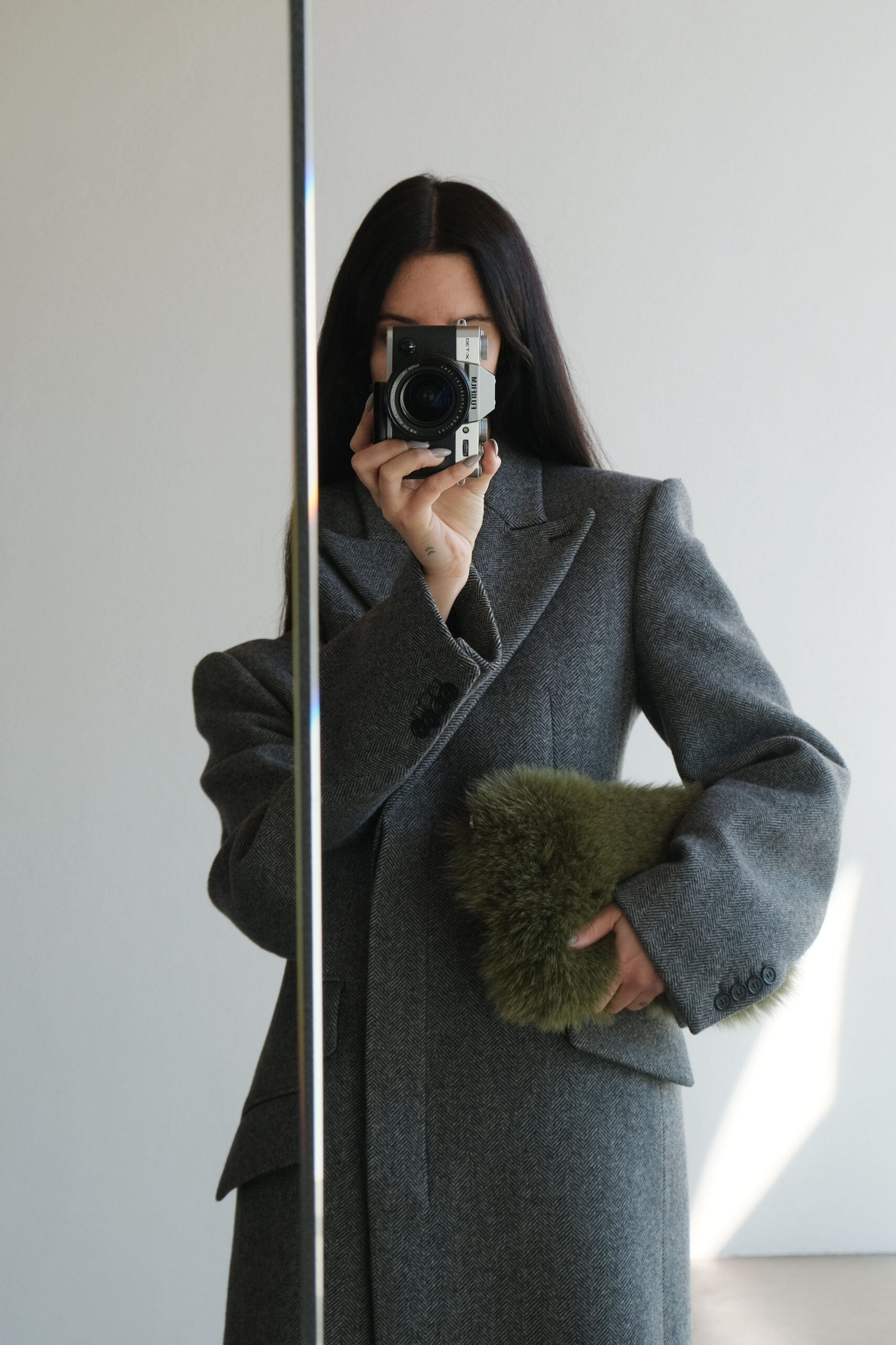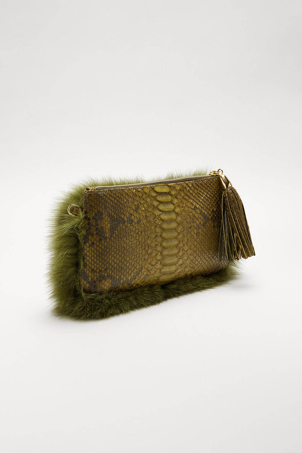 Clutch kích thước trung bình bằng da trăn và lông cáo