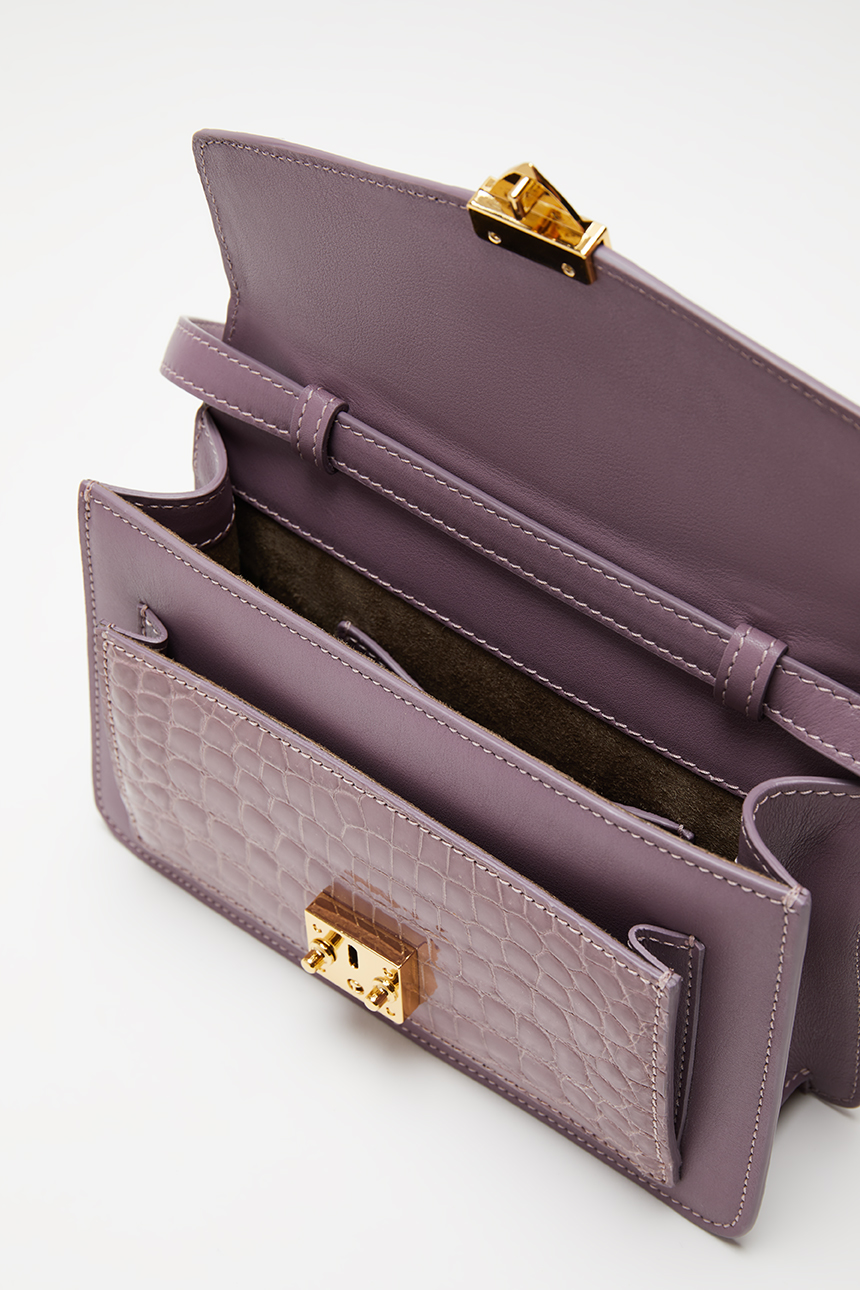 Túi cầm tay cỡ nhỏ bằng da cá sấu và da bê.