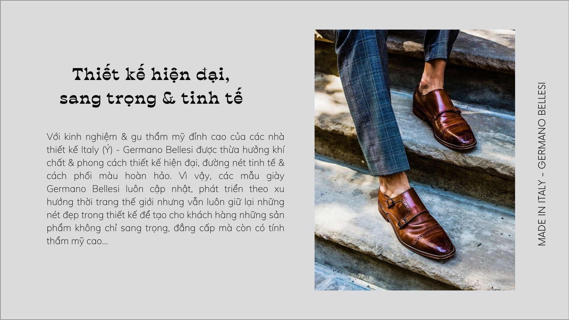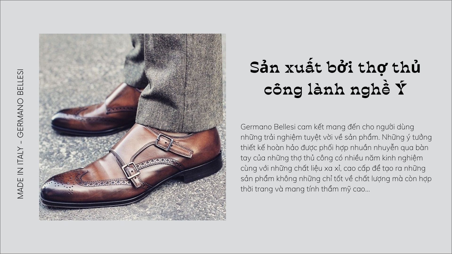 𝑮𝑬𝑹𝑴𝑨𝑵𝑶 𝑩𝑬𝑳𝑳𝑬𝑺𝑰 là một thương hiệu giày nam sang trọng chất lượng cao của Ý, hoàn toàn được sản xuất tại Ý bằng cách sử dụng các vật liệu và phụ kiện tốt nhất.