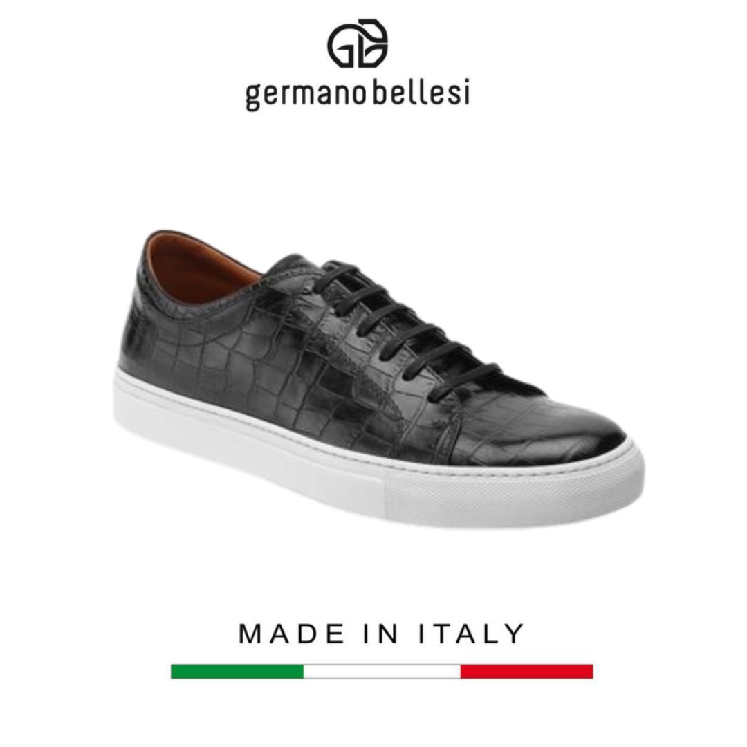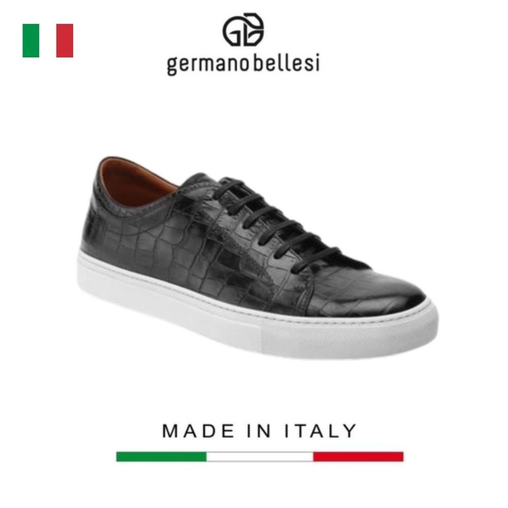 Sneaker da nam Germano Bellesi được làm hoàn 100% chất liệu da bò thật nguyên tấm với độ bền cao. Với mục tiêu mang đến cho khách hàng những trải nghiệm tốt nhất, giày thể thao Germano Bellesi được kiểm chọn tỉ mỉ từ nguyên vật liệu cho tới quá trình sản xuất. Giày được sản xuất thủ công cẩn thận từng đường kim mũi chỉ từ những thợ lành nghề Ý. Mẫu giày được thiết kế theo phong cách trẻ trung, năng động hoàn toàn phù hợp với khách hàng sang trọng, thanh lịch nhưng vẫn yêu thích thể thao, sự năng động.  Đế giày dán cao su chịu lực tốt, không bị xẹp lún, có độ ma sát và bám dính cao giúp cho khách hàng có thể thoài mái di chuyển và vận động. Ngoài ra, đôi giày có dây buộc, có thể tùy chỉnh kích cỡ cho vừa chân. Sneaker Germano Bellesi là sự lựa chọn hàng đầu cho các quý anh sang trọng và yêu thích sự tiện dụng, năng động, thể thao.