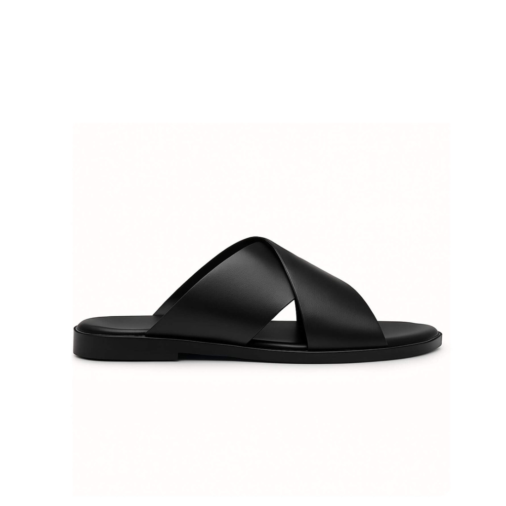 Khám phá đôi dép da màu đen dành cho nam này, hoàn hảo để tận hưởng mùa hè một cách sành điệu. Được chế tác từ chất liệu cao cấp, đôi dép này có thiết kế đơn giản với quai chéo đôi ở mũi giày, mang đến sự vừa vặn và chắc chắn. Đế dép phẳng và kiểu dáng thẳng khiến chúng trở nên lý tưởng cho những bộ trang phục thường ngày sang trọng, hoàn hảo với quần vải lanh, quần short Bermuda hoặc quần jean. Được thiết kế dành cho nam giới yêu thích sự đơn giản tinh tế, đôi dép này kết hợp giữa tính thẩm mỹ hiện đại và công năng. Hoàn hảo cho kỳ nghỉ hoặc dạo phố buổi tối.