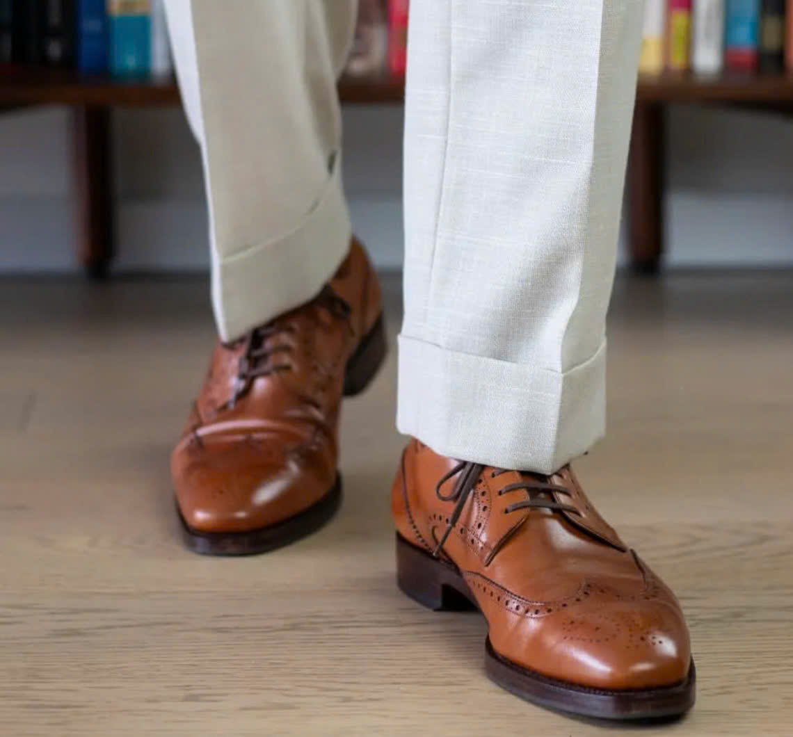 Với quần chinos hoặc jeans: Giày da nâu sáng giúp diện mạo phóng khoáng, năng động hơn nhưng vẫn giữ nét tinh tế.