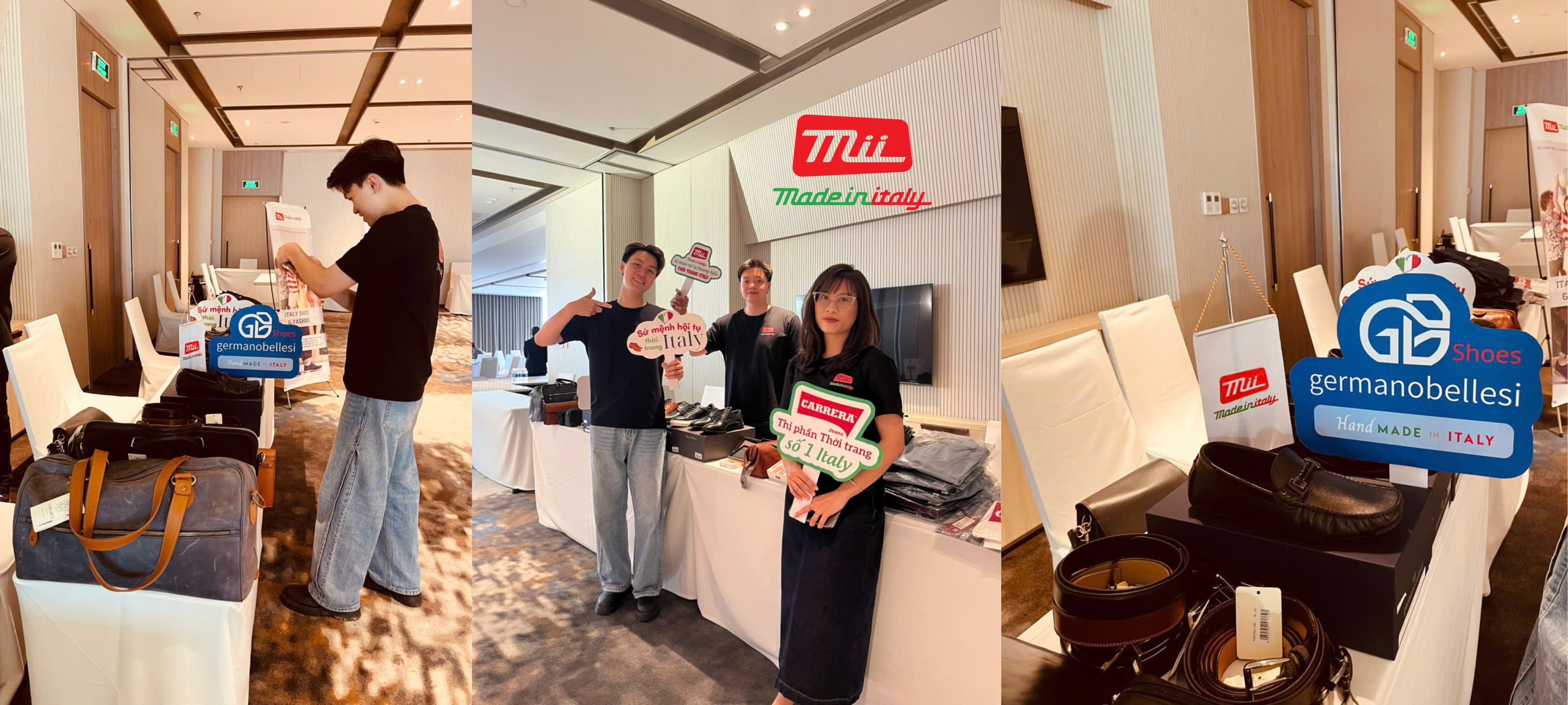 Với không gian thiết kế chỉn chu và tinh tế, gian hàng của Mii nổi bật giữa khu vực trưng bày với loạt sản phẩm sản xuất và nhập khẩu chính hãng từ Ý – từ giày da thật thủ công, túi ví thắt lưng thanh lịch, đến thời trang cassual mang đậm phong cách quý ông hiện đại. Sự góp mặt lần này không chỉ thể hiện bản lĩnh thương hiệu trong cộng đồng doanh nhân, mà còn là một bước tiến chiến lược trong hành trình mở rộng mạng lưới đối tác và chinh phục thị trường khách hàng cao cấp, thể hiện “Sứ mệnh hội tụ thương hiệu thời trang Italy”.