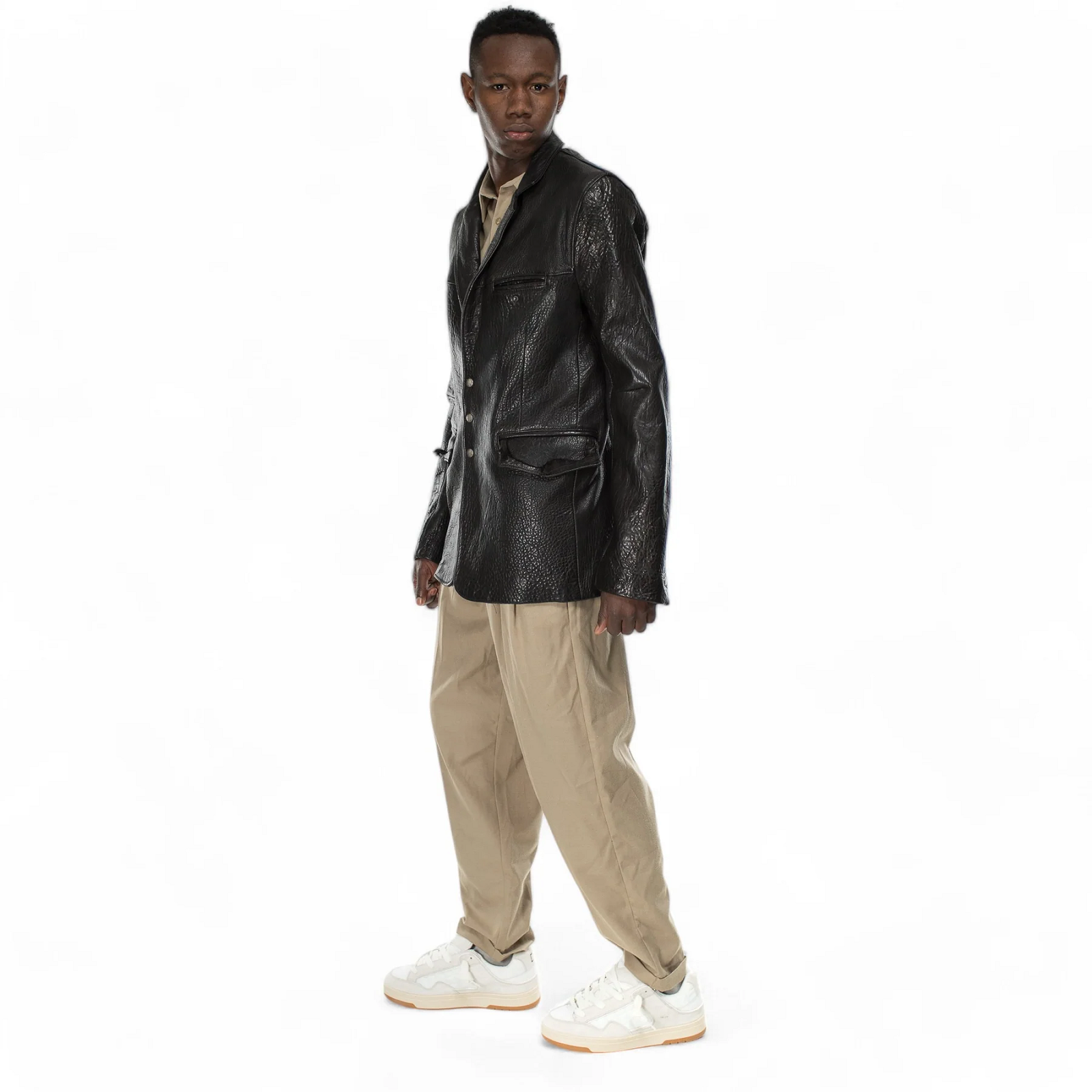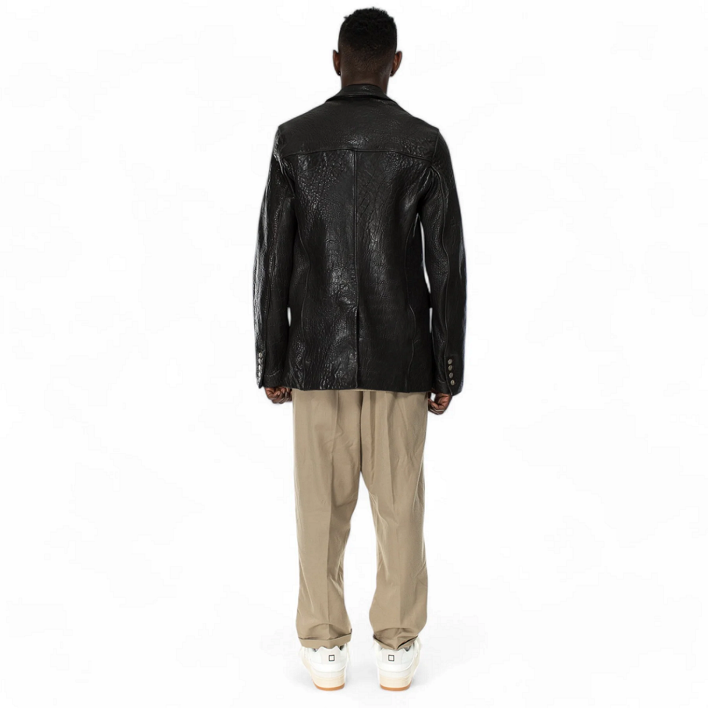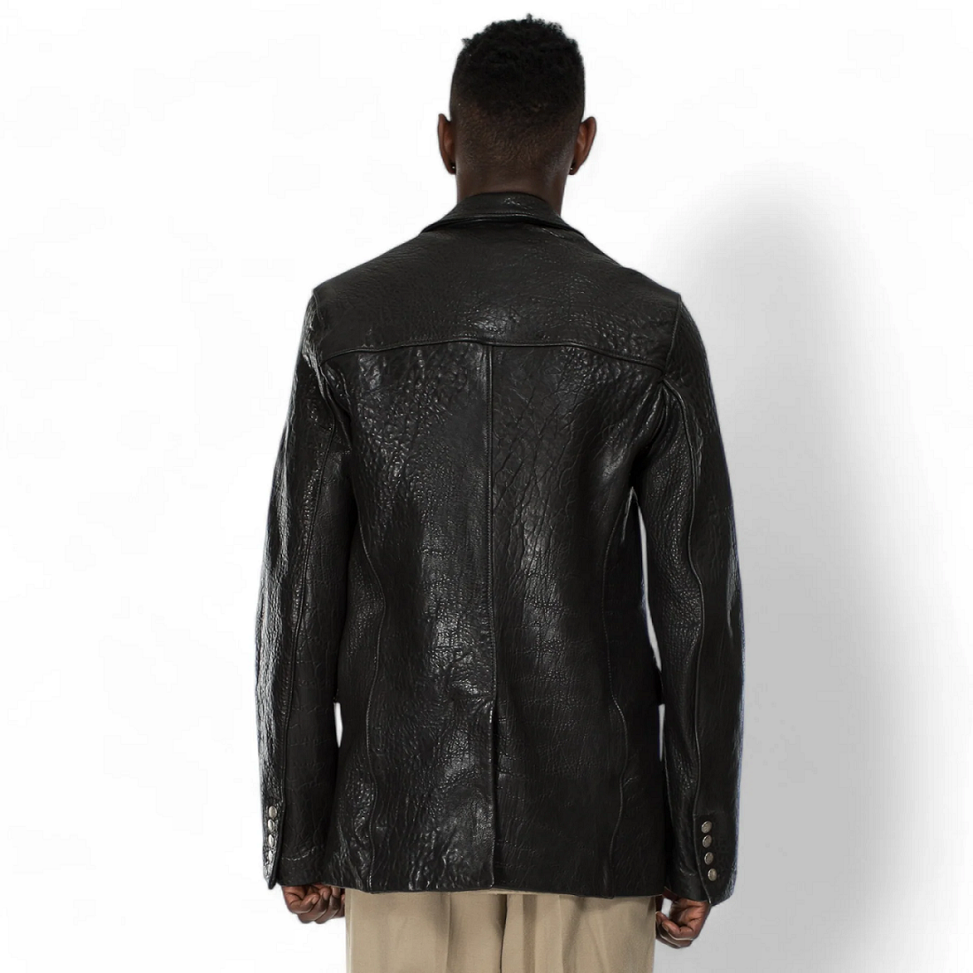 - Áo khoác Blazer nam da cừu đen bóng, thủ công Ý, size S đến 3XL