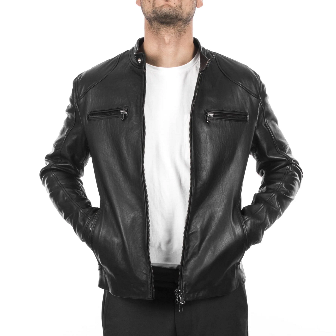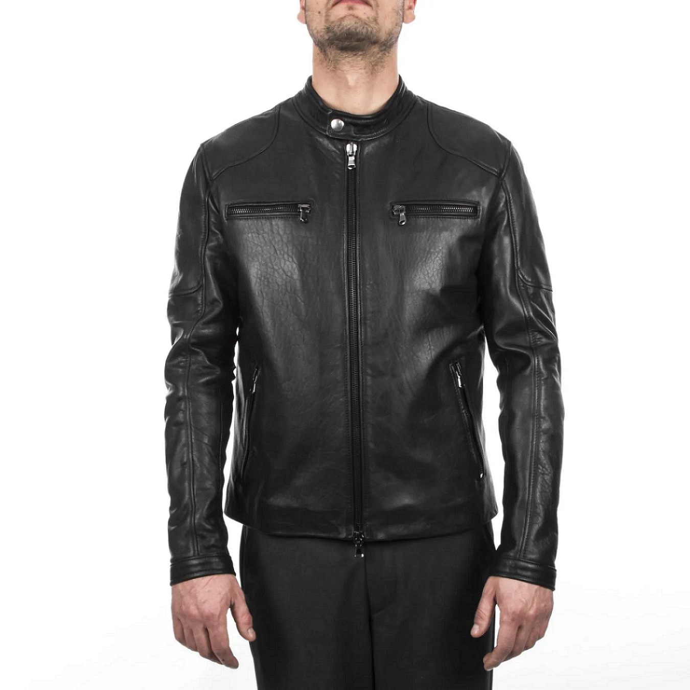 - Áo khoác da biker Ý thủ công cho nam, dáng Slim Fit