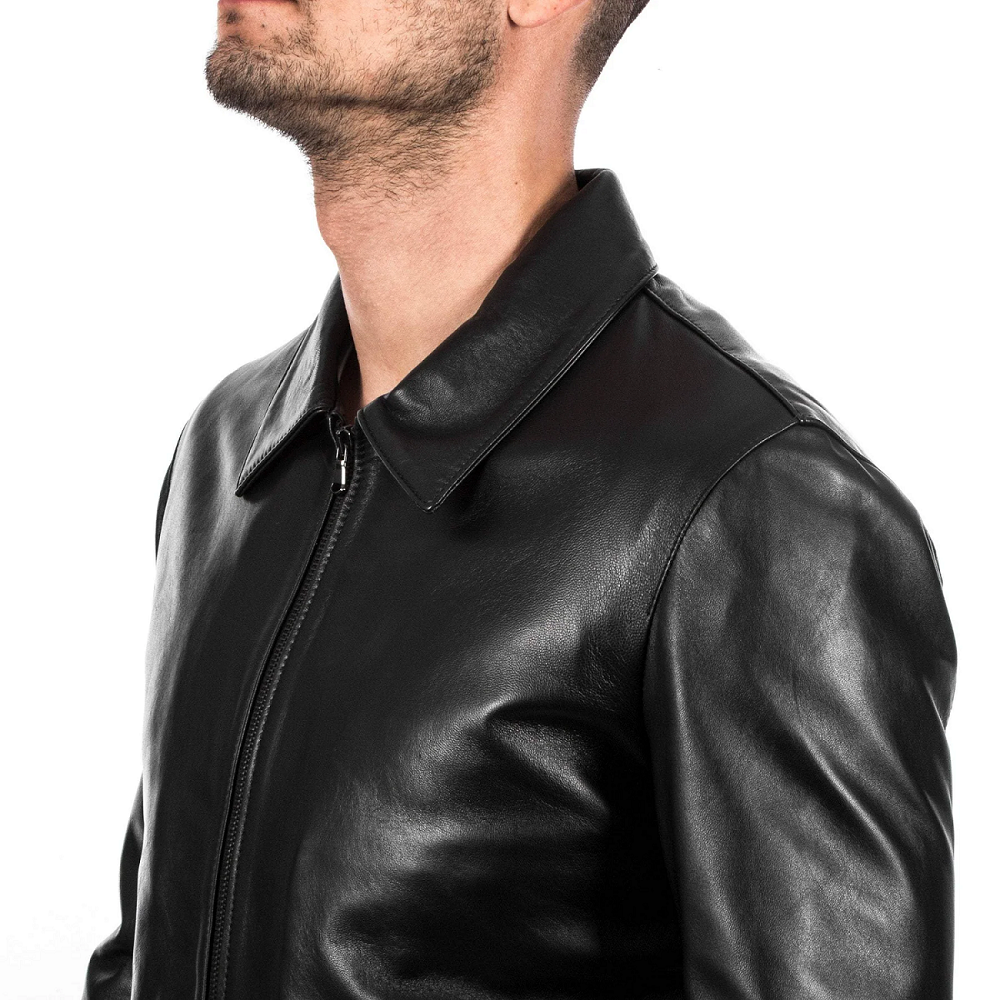 - Áo khoác da cừu mềm mại thủ công Ý cho nam, màu đen, dáng Slim Fit, size XS đến XXL