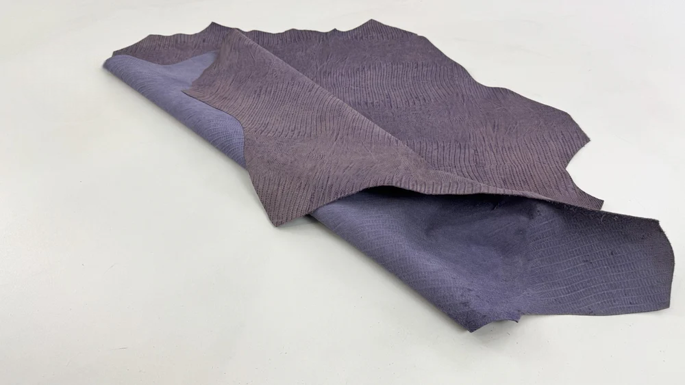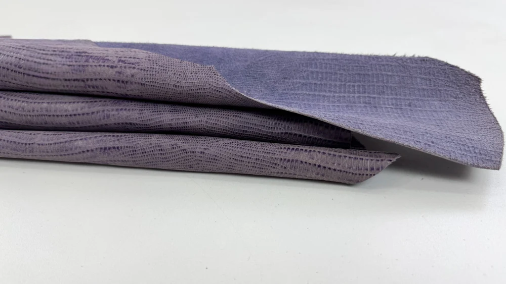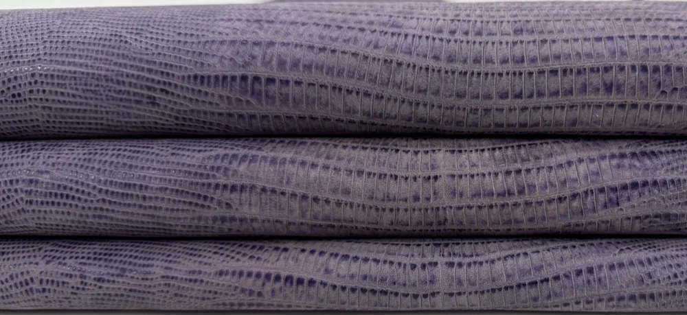MÀU SẮC: Tím cổ điển in họa tiết da báo Tejus trên da bê.