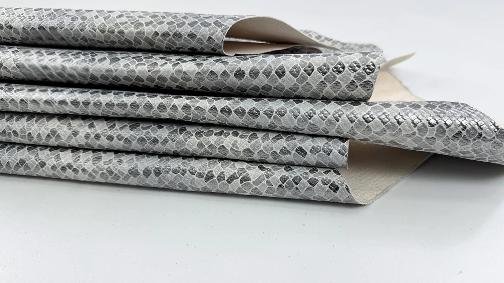 Da bê màu bạc ánh kim, họa tiết da rắn mài mòn, 2 tấm, diện tích hơn 16 feet vuông, dày 0.7mm, mã sản phẩm C7102