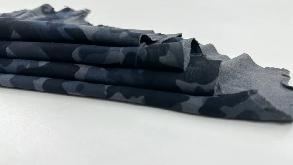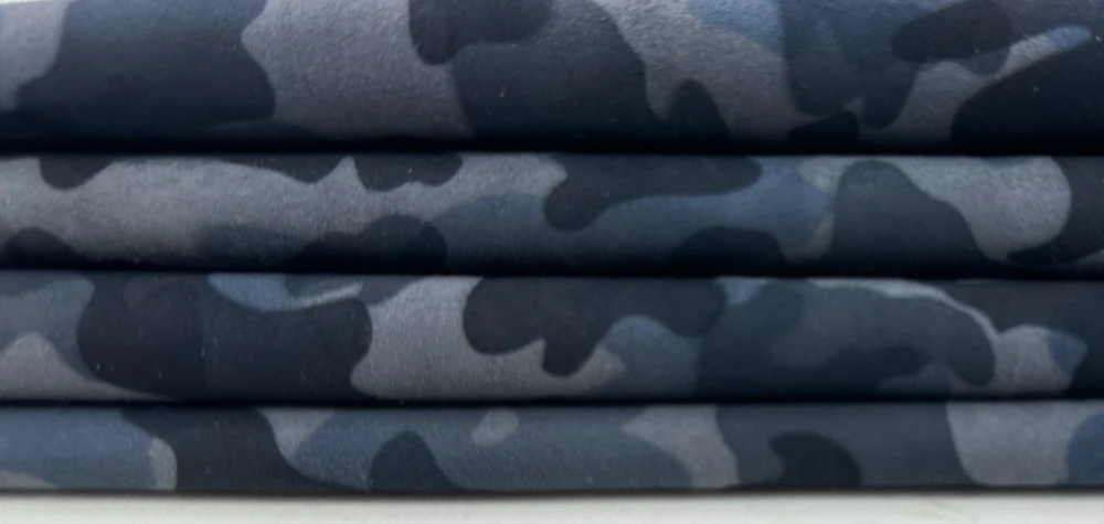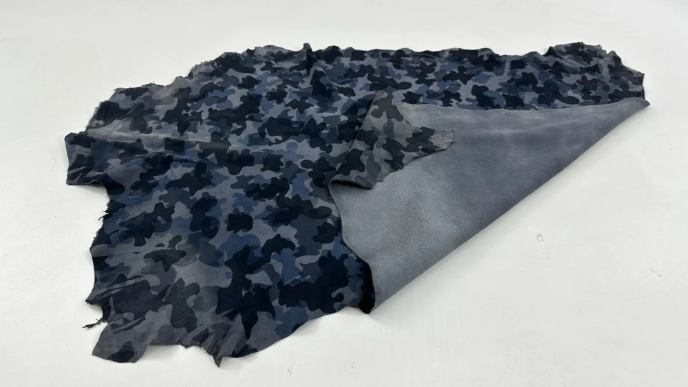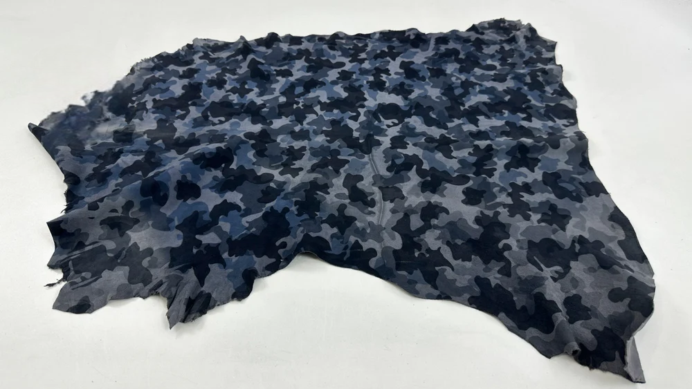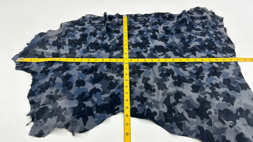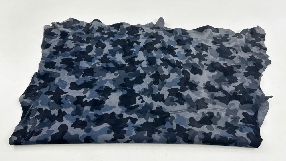 Da cừu mỏng màu xanh xám da lộn in họa tiết rằn ri, diện tích hơn 4 feet vuông, độ dày 0.6mm #C5665
