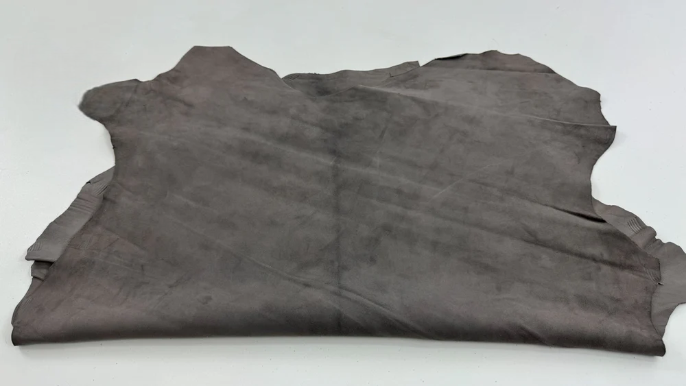Da dê Ý mềm mại, màu xám da lộn, dày 0.8mm, diện tích hơn 4 feet vuông, mã sản phẩm #C6272