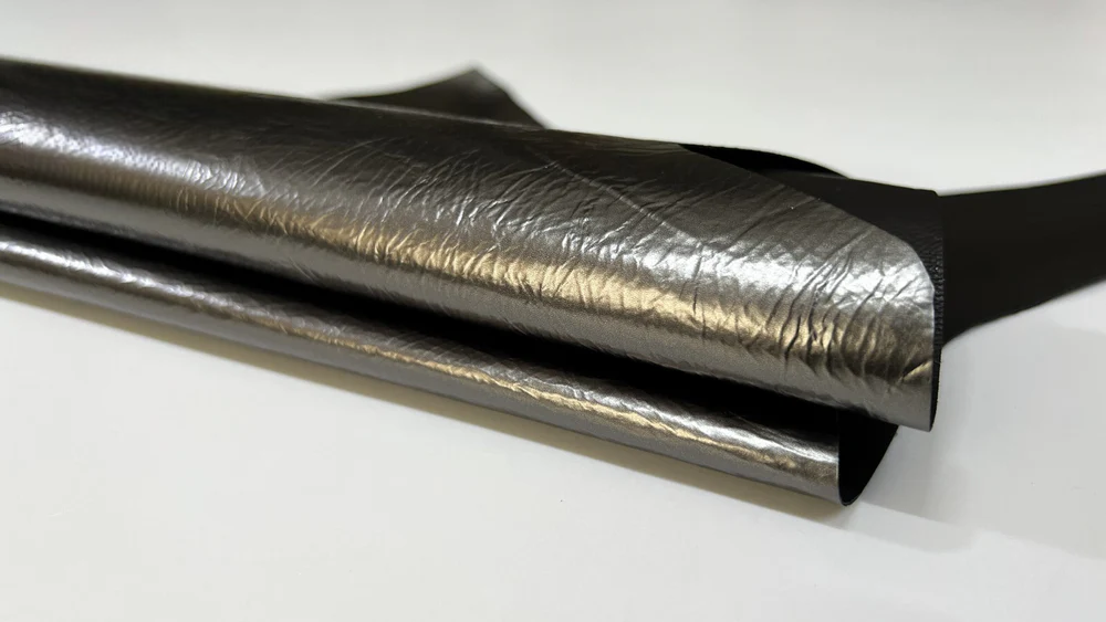 Da dê mỏng mềm phủ nhũ kim loại thiếc nhăn, kích thước 3+sqf 0.6mm #B6134