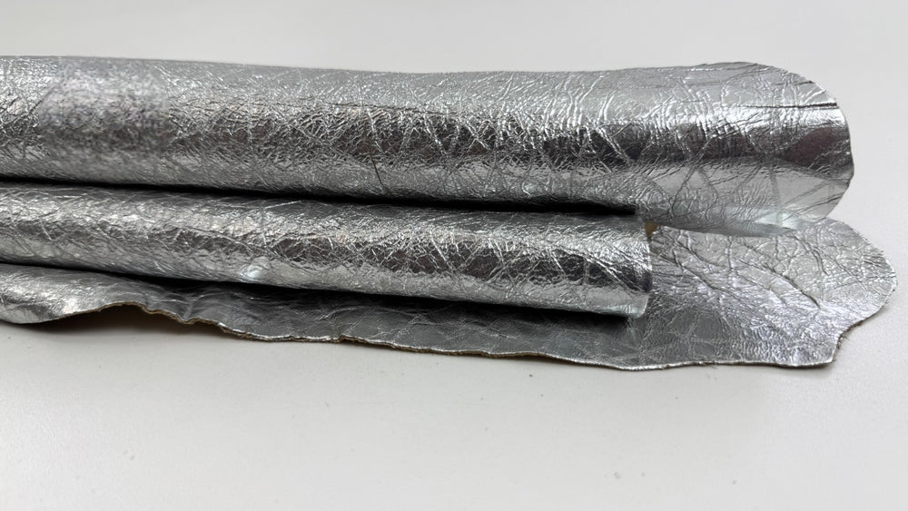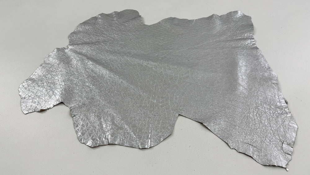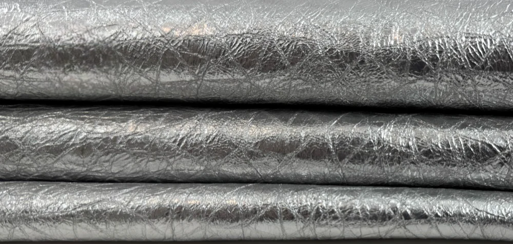 Da cừu Ý mềm mại, màu bạc nhăn, kích thước 3+sqf, dày 0.8mm #C6448