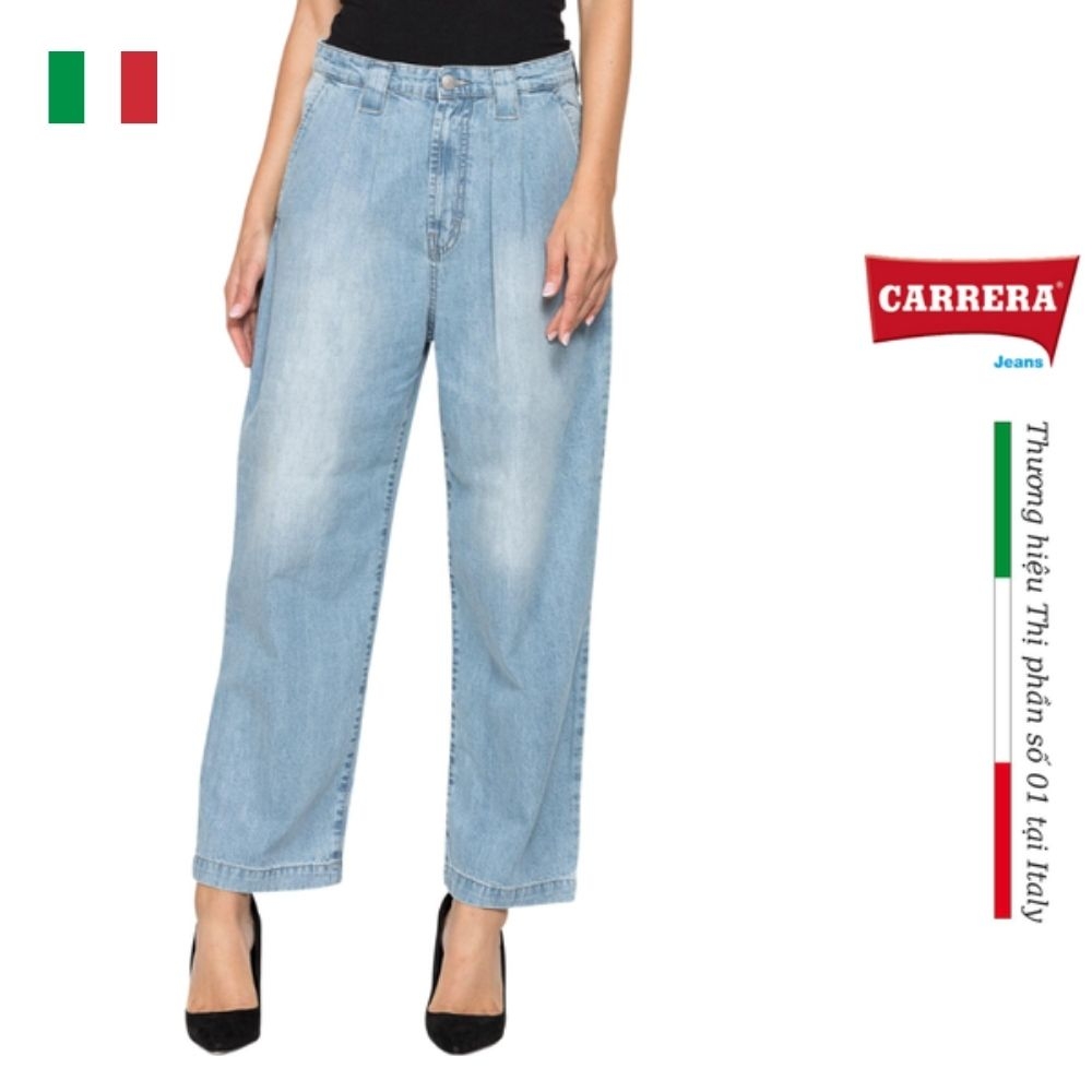 Quần jean dáng baggy rộng với đũng thấp và ống rộng.