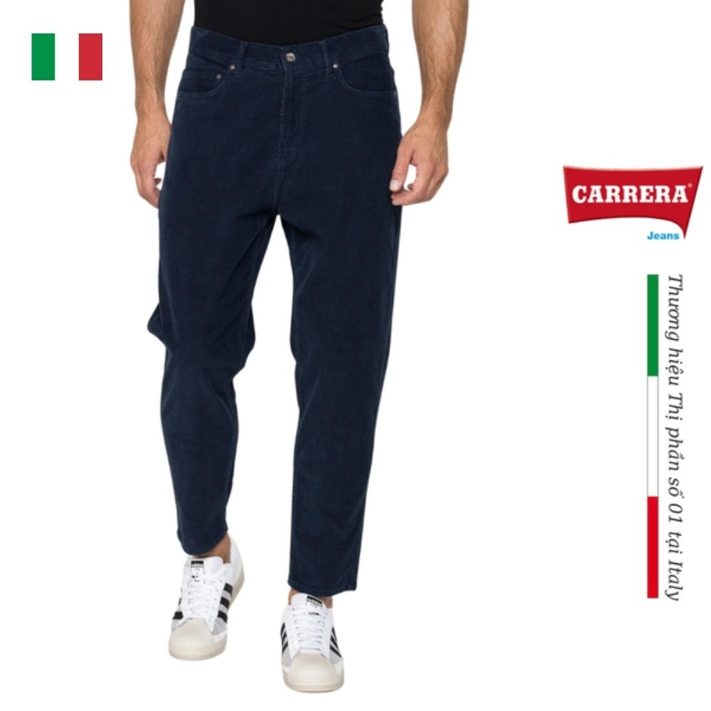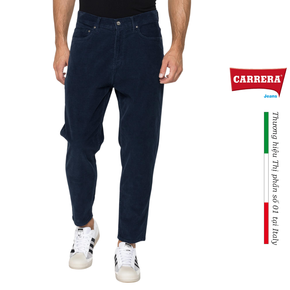 Quần nhung 5 túi dáng Carrot fit. Được làm bằng vải co giãn với công nghệ bông "Spintech" trên da. Eo thông thường với đáy quần trễ xuống, khóa kéo và phần dưới ôm sát mắt cá chân. Nhãn hiệu Carrera Jeans ở mặt sau của thắt lưng, nút và đinh tán in thương hiệu Carrera. Trang phục lý tưởng cho những người đang tìm kiếm quần có kiểu dáng hiện đại và giản dị.