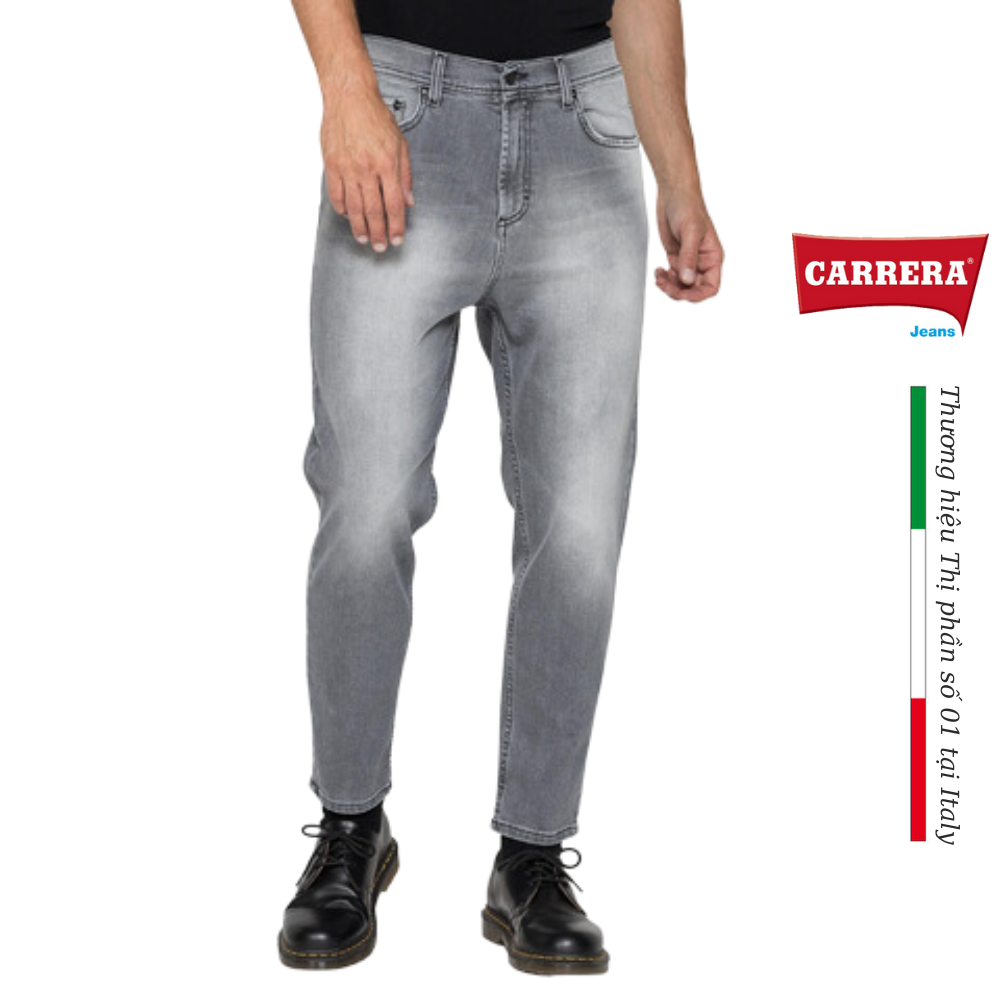 Quần jean 5 túi kiểu dáng baggy, eo thường có khóa kéo, đũng quần tụt và mắt cá chân có đáy hẹp. Nhãn thương hiệu ở mặt sau của thắt lưng, nút và đinh tán Carrera. Chất liệu denim lý tưởng cho những ai đang tìm kiếm một chiếc quần thoải mái với kiểu dáng hiện đại, được làm từ vải co giãn “Spintech - chỉ cotton trên da”.