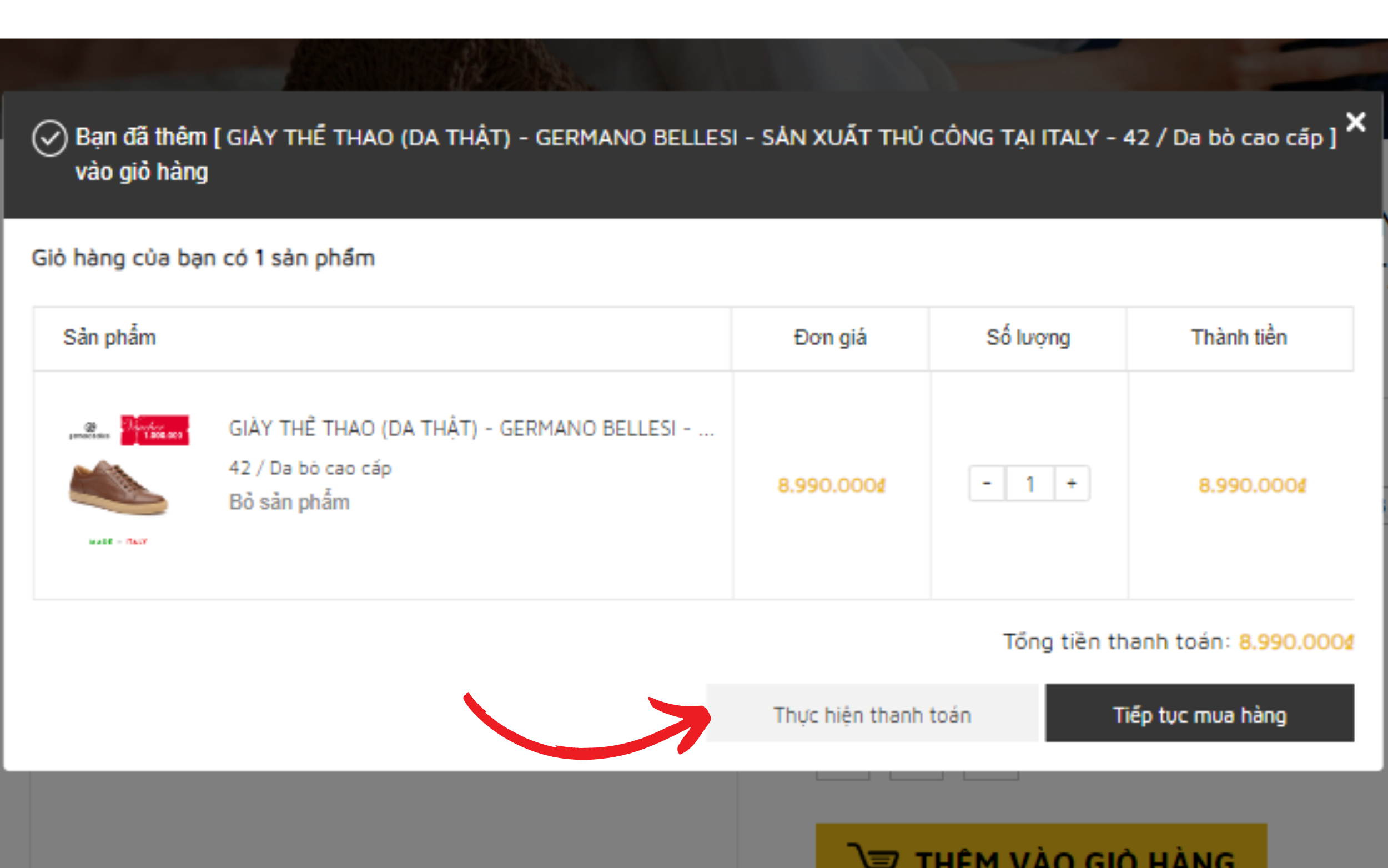 - Trong trường hợp quý khách muốn thanh toán luôn thì nhấn vào nút 'Tiến hành thanh toán".